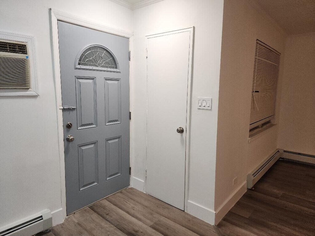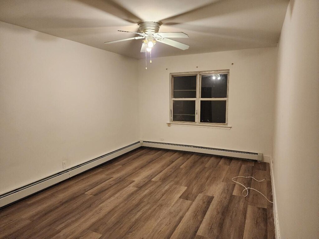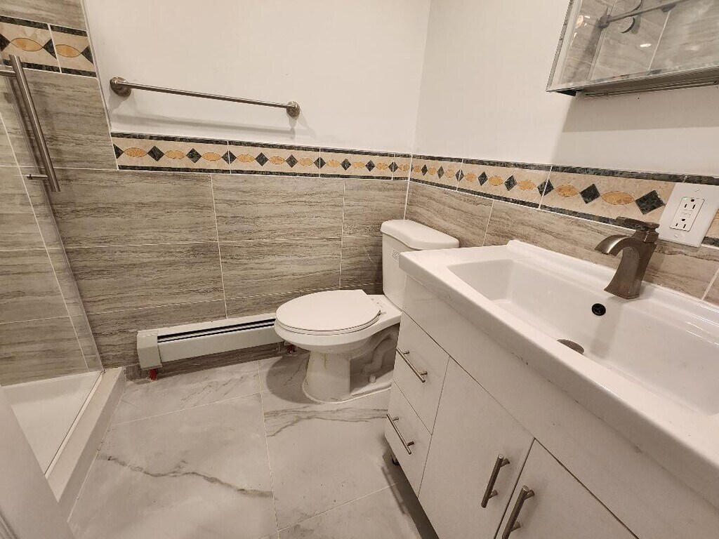 Huge 2BR apartment newly renovated on the second floor in 2 family brick house with front and back porches. 2 huge bedrooms, living room and eat in kitchen. The kitchen is newly renovated which gives a modern look with new cabinets, quartz counter top, gas range and stainless steel refrigerator. Renovated bathroom gives a luxurious feel with new tiled shower stall, modern glass shower door, vanity and a linen closet. Recessed lights are installed in the living room, dining area and the bathroom with dimmers. Ceiling fans are in the living room and both bedrooms. The whole apartment is installed with new luxury vinyl floor. The walls are freshly painted. The apartment has a walk-in closet plus a standard clothes closet in the main bedroom. The second bedroom has its own closet. The apartment is conveniently located. Easy access to Brooklyn Queens Expressway. Ideal for family with a car. one car park is available in the driveway. Plenty of street parking. Near a shopping mall with convenient grocery shopping.
