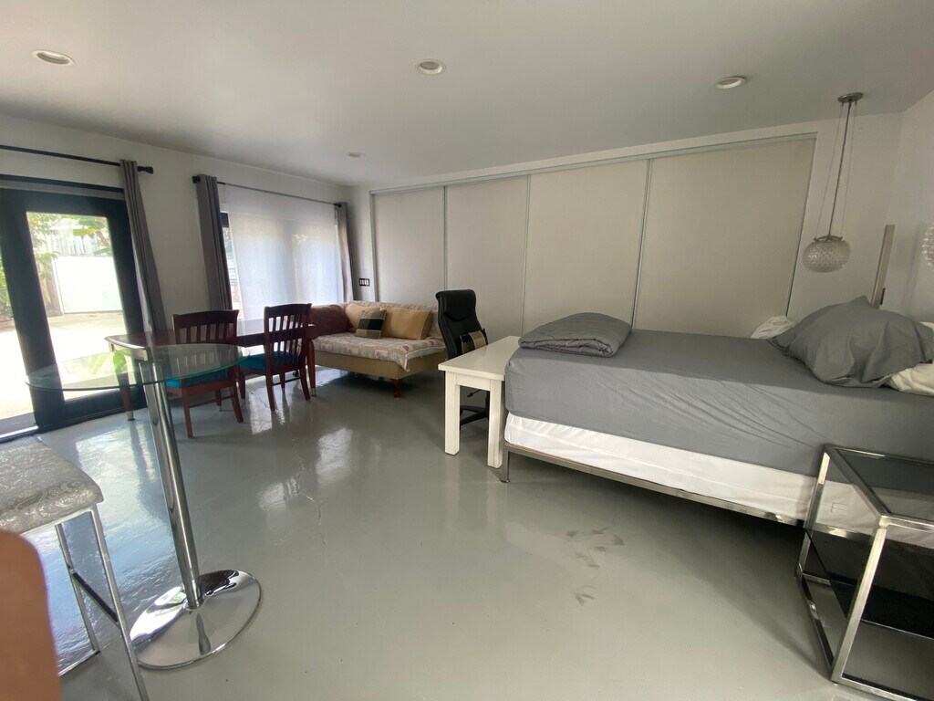 Keep it simple at this peaceful and centrally-located place. Osmotic water filter, mini-split (ac/heat), black out shades, and luxury bathroom make this a perfect place to live. Basic furniture; chrome bed, tables, chairs, microwave, dishware optional (basic AirBnb setup optional). Exterior security cameras. (No open) Stovetop - Gas range. Exterior of the property is a straightforward design for low-maintenance living. Surrounded by fruit trees and greenery. Private backyard. Onsite outdoor cat, birds, butterflies, perfect for someone who loves nature. Only 4 guests (2 from airbnb) in the last 5 yrs because 2 ended up extending for 2 yr long term so the place is in great condition. This studio apartment at 3047 Edgehill Dr offers 495 square feet of living space, featuring one bathroom. The unit includes essential amenities such as heating, a security system, and Wi-Fi access. The bathroom is equipped with a tub/shower combination for convenience. The main living area provides flexibility for various furniture arrangements. The exterior of the property is well-maintained, contributing to a pleasant environment. Rental price is available upon request. This property is ideal for individuals seeking a compact living space with essential features.