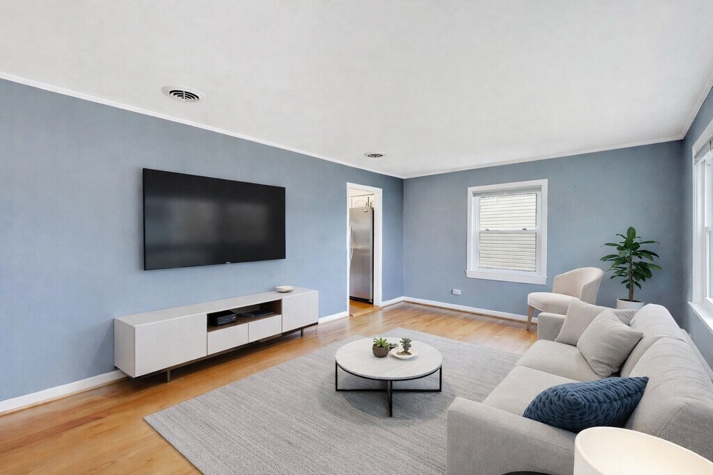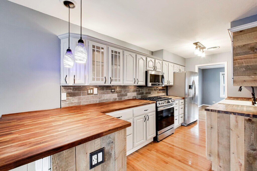 Don't miss out on this charming ranch home in a perfect location! Completely updated, this 3 bedroom, 1.5 bath home features hardwood floors throughout, generous sized bedrooms, central heat and air, a laundry room, and a massive backyard with detached garage, perfect for entertaining. The updated kitchen includes modern stainless steel appliances with beautiful walnut countertops and plenty of room for a formal dining area. Incredible outdoor space featuring a new large deck, seperate firepit with hanging lounge chair, and a gardening area, making this the perfect place to host summer BBQs or relax with family. The detached garage and shed provide plenty of additional storage options. Perfect location on a quiet street but still close to schools, shops, parks, and everything Palatine has to offer. Make this yours today!