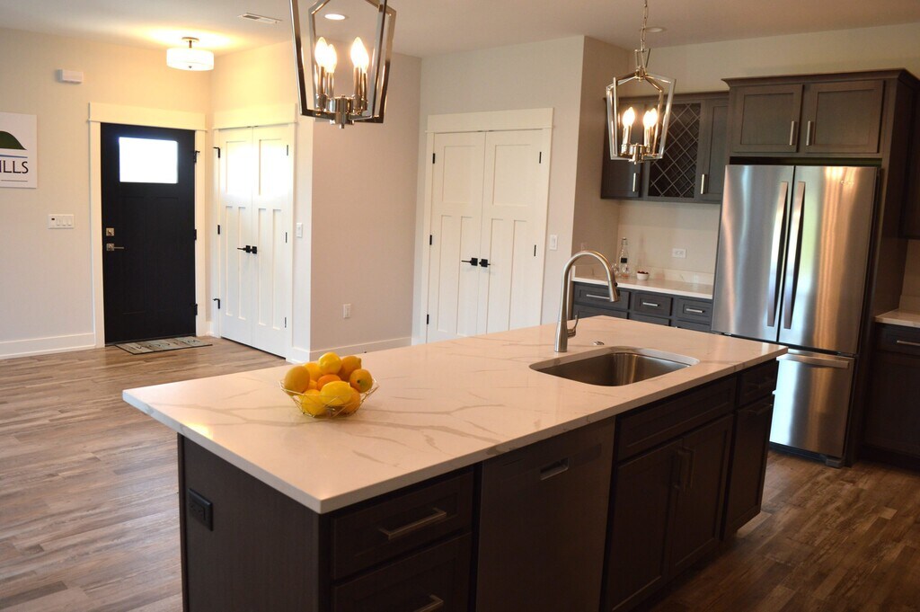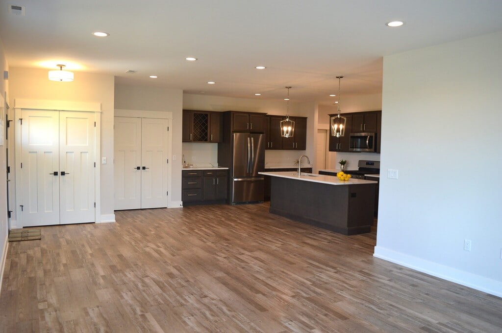 Rent this beautiful newly constructed 2 Bed, 2 Bath main level Condo in Monroe! Step into this stunning, newly built condo offering an open concept layout. The expansive kitchen features quartz countertops, custom cabinetry, stainless steel appliances, a large center island, and a dedicated dining area. The bright and spacious living room opens to a private patio through large patio doors. The master suite is a peaceful retreat with a private bath that includes dual vanities, a walk-in shower, and a generous walk-in closet. A second bedroom, a full bathroom, and the laundry room complete this unit. Outside, this condo includes a one car attached garage and a private patio. Enjoy the added benefit of lawn care and snow removal services included in the rent. 2 cats or 1 dog allowed, max weight of 50 pounds. 1 Car Garage Central Air Dishwasher In Unit Laundry Kitchen Island Lawn Care Provided Master Suite Private Entrance Professionally Managed Quartz Countertops Snow Removal Provided Stamped Patio Washer and Dryer