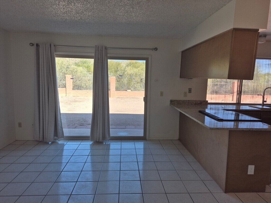 Newly remodeled kitchen and bathrooms, freshly painted inside and outside. Bright, spacious and functional, this 3 bed, 2 bath 1,490 sq ft home is nestled on a generous lot and surrounded by mountain views. With a carport, low-maintenance large yard, tile interiors, and Tucson-friendly heating and cooling. The home is a terrific option for those seeking a spacious, quiet retreat close to schools and local conveniences and is ideal for families.