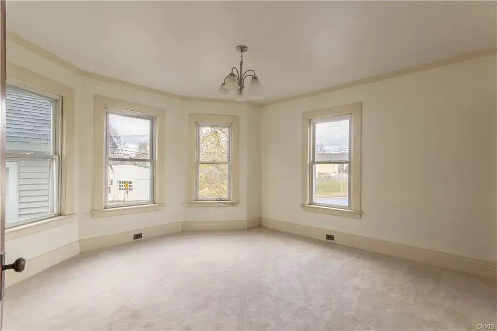 Very large 1450 sf newly remodeled 3 bedroom 1 bath in quiet Carthage. Walking distance to State Street and parks. 11 miles/20 mins from Fort Drum. Carthage Central School District. Upstairs are 3 bedrooms bathroom and laundry room. Downstairs is living room, additional living room, dining room, and large kitchen. Lots of extra storage space. Small pets okay with pet deposit. Owner pays water and trash. Tenant pays electric and heat. $200 per month credit towards heat Nov-Feb.