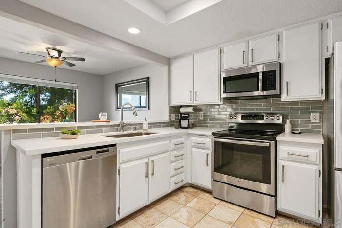 Located in a well-appointed, desirable La Costa neighborhood! Fully renovated light & bright turnkey townhome on a quiet, tree-lined cul-de-sac where families can play safely and families have lived for years. RENOVATED INTERIOR: This end-unit offers exceptional privacy with only one shared wall and seamless indoor/outdoor living. Inside, brand-new luxury vinyl plank flooring throughout (no carpet!), updated bathrooms with modern vanities and fixtures, and fresh neutral paint creating a move-in ready sanctuary. UPGRADED KITCHEN & LIVING: The highly upgraded open-concept kitchen features quartz counters, subway tile backsplash, stainless steel appliances, and barstool seating perfect for entertaining. Recessed lighting throughout adds to the bright, spacious feel. Both dining and living room have new ceiling fans with lights. Cozy up by the fireplace in the living room or step out to your private ground-level patio with pergola and bamboo privacy fencing. SPACIOUS BEDROOMS: Downstairs you'll find three generously-sized bedrooms, including a spacious primary suite with TWO closets and access to a large private patio below. Both full bathrooms are beautifully updated with contemporary finishes. All bedrooms have new ceiling fans with lights. OUTDOOR SPACE: Large, private balcony with views of mountains and downstairs patio PRACTICAL FEATURES: In-unit laundry with washer & dryer INCLUDED (not just hookups!), two portable A/C units provided, a direct-access garage to the main floor, an Ecobee smart thermostat, Ring Camera doorbell and a garage key code pad. PARKING: Attached garage, driveway parking allowed. Extra assigned parking space #324 plus nearby guest parking available. BONUS: extra-large storage room down the steps on the left side most owners reserve this for themselves, making this a rare perk for renters! RESORT AMENITIES: Enjoy resort-style amenities: 2 pools/spa, 2 tennis courts, and open green spaces throughout the complex. The unit is conveniently located close to the tennis courts and pool. On site security team. Water is included in the rent! UNBEATABLE LOCATION: Short drive from the beach (about 15 minutes), 5 minutes to shopping and groceries, easy freeway access. Top-rated Carlsbad Unified School District - schools rank in top 10% statewide. Established, family-friendly community with social opportunities for all ages. NEIGHBORS: Fantastic, kind and respectful neighbors. All have owned and lived in their townhomes for many years. Provides a great community and welcoming feel. Professionally managed by owner who lives 15 minutes away and is very responsive providing direct and prompt communication. *Showings by appointment - message to schedule*
