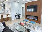 High-end renovation, 3 bedrooms, 2 full bathrooms, offers an amazing view of the Boston skyline from the glassed-in deck on the top floor of a three-family. This space is great for families or groups traveling together. This home features tiled floors, marble bathrooms, a gas fireplace, a gourmet kitchen with quartz countertops, top-of-the-line appliances, a breakfast bar with seating for 4, and a wine fridge. Bathrooms feature smart toilets and rain showers, a master bedroom with a master bath, 2 other good-sized bedrooms, and in-unit laundry making this the ideal place to call home while you stay in our beautiful city. You will love the abundance of light, sun, and magnificent views of the Boston skyline and sunsets. This is a very spacious apartment in a three-story building