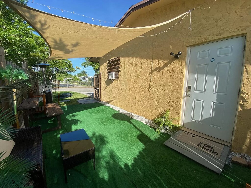 This property at 310 SW 9th Ave features a studio layout with a kitchenette but dining in your secluded private yard space has always proven to be desirable for most tenants.Features 1 bedrooms and 1 bathroom, encompassing a total of 525 square feet. The living area is designed for efficiency, providing ample space for furniture and daily activities. The bathroom is equipped with essential fixtures for convenience. Notable amenities include a security system, ceiling fans for climate control, and high-speed internet access with Wi-Fi. A washer and dryer are included for in-unit laundry convenience. Additional storage space is available to help keep the living area organized. The exterior offers a straightforward design with easy access to the entrance. The rental price is available upon request.