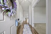 Move-in Ready Home! Step inside to beautiful hardwood-style flooring and a versatile study or bonus living area—perfect as a 4th bedroom, media room, or whatever suits your needs, complete with French doors. You’ll love the open-concept layout, ideal for modern living and entertaining. The upgraded kitchen features granite countertops, breakfast island, 42-inch cabinets, and stainless steel appliances, all flowing seamlessly into the dining and family room. The primary suite offers a generous bedroom, a large walk-in closet, and a spa-like bathroom with dual sinks, a separate shower, and a soaking tub. The split-bedroom floor plan adds privacy with two additional bedrooms—each with walk-in closets—and an oversized laundry room. Just a short walk to the community pool and splash pad, plus full access to the resort-style amenities: pools, fitness center, parks, and miles of scenic trails in this master-planned community. Small pets allowed—breed restrictions. Ready for immediate move-in—perfect for tenants that are ready now.