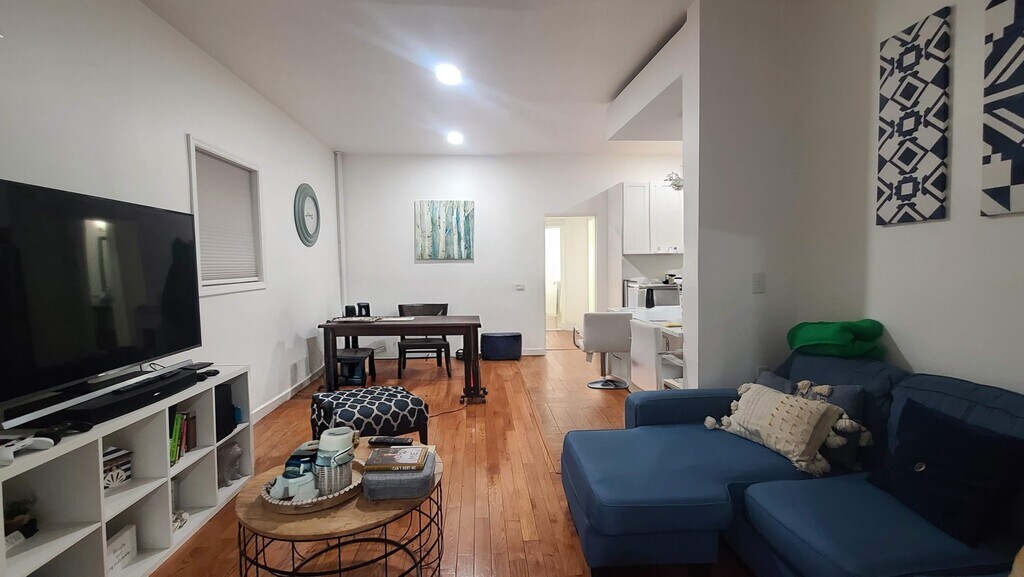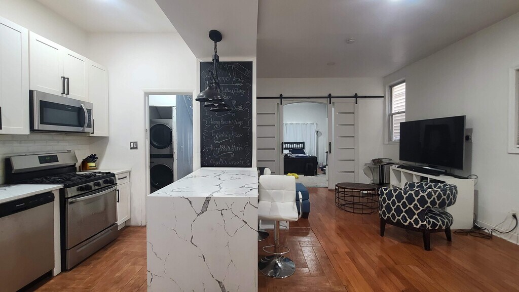 A stunning 3-bedroom, 1-bath apartment in Union City, exceptionally spacious with lofty ceilings and abundant windows that bathe the space in natural light, creating a bright and airy ambience. The chef-style open-layout kitchen features stainless steel appliances, quartz countertops, and ample cabinetry, seamlessly blending elegance with practicality. Enjoy the luxury of an in-unit washer and dryer, and step out to a shared backyard that offers easy outdoor access and a private retreat. Small pet is considered with owner's approval. Water/ sewer is included, free street parking.