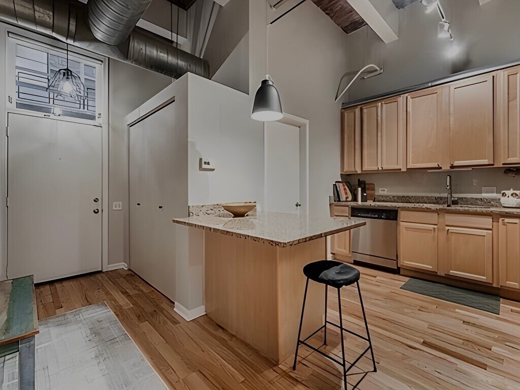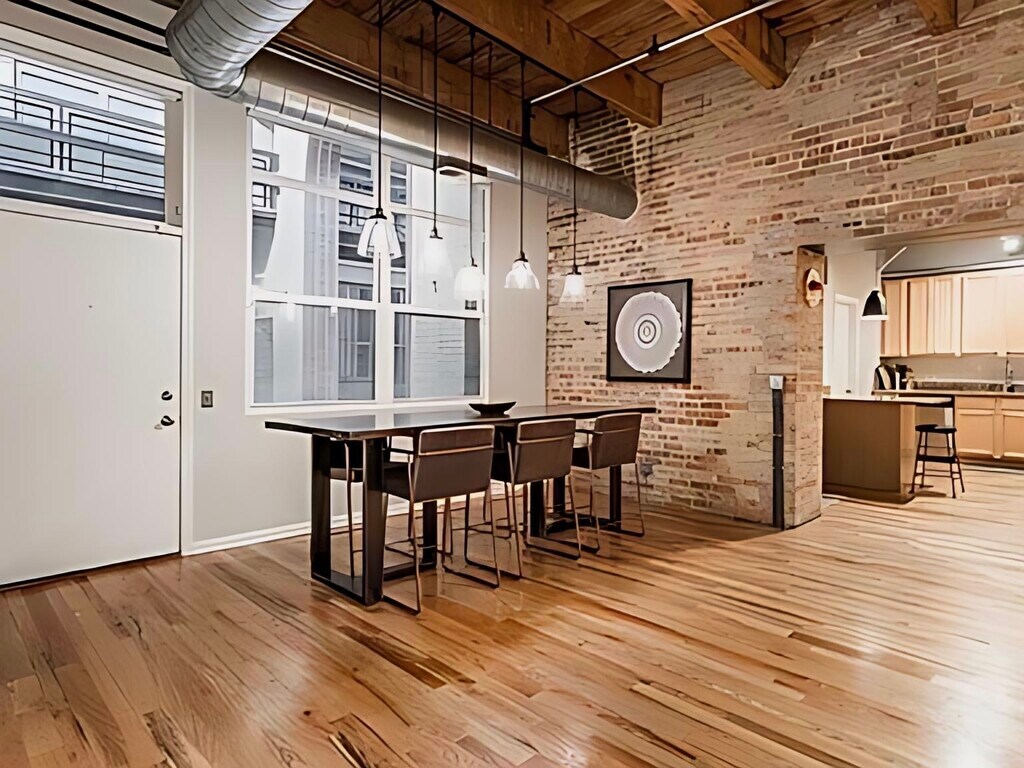 Centrally located West Loop loft with soaring ceilings and exposed brick walls spanning over 1500 SF! Two bedrooms, two baths located just minutes from the Pink Line stop. Enjoy rooftop views and a drink with the included dry bar! Beautiful light and hardwood floors complete this apartment. Come schedule a tour today!