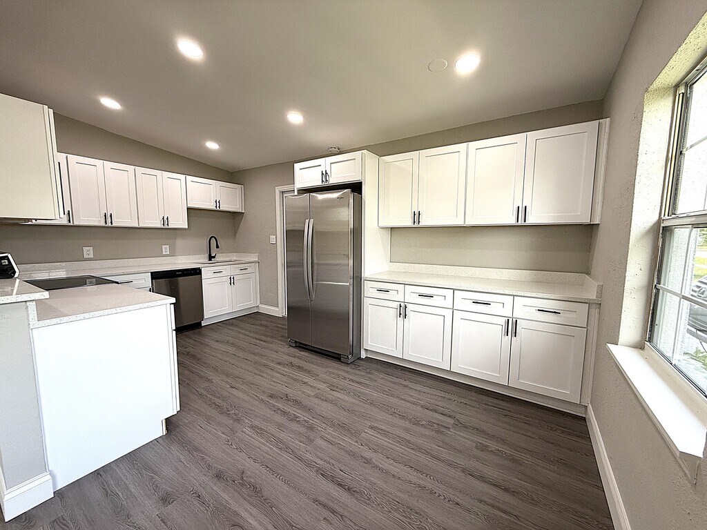 Welcome to your dream home in Port Charlotte! Nestled in the heart of Port Charlotte, this charming and recently remodeled home is perfect for those seeking a modern, comfortable living space. With its large backyard, this property is ideal for outdoor enthusiasts and families. Enjoy cooking in the newly renovated kitchen, complete with quartz countertops, soft-close cabinets, and stainless-steel appliances. The open floor plan includes a living room/dining room combo. The home features three bedrooms, each closet with built-in shelving, providing ample space for the whole family. Both bathrooms have been updated with modern fixtures and soft-close cabinets, and the entire home boasts durable and stylish luxury vinyl plank flooring. A single-car oversized garage offers convenient parking and additional storage space, and you'll have peace of mind with a brand-new roof installed in 2024. This home has been carefully maintained and is free from flooding or hurricane damage. For added convenience, there is a washer/dryer hookup available. Located just a short drive from beautiful beaches and prime fishing locations, this home also offers easy access to Charlotte Harbor and the Sunseeker Resort, perfect for boating, fishing, and relaxation. Sports enthusiasts will love the proximity to the Tampa Bay Rays Spring Training and Atlanta Braves Stadium, while Fishermen's Village provides charming dining, shopping, and entertainment options. Wellen Park offers beautiful outdoor activities for family outings, and all essential amenities, including hospitals, schools, shopping, and dining, are conveniently located nearby.