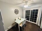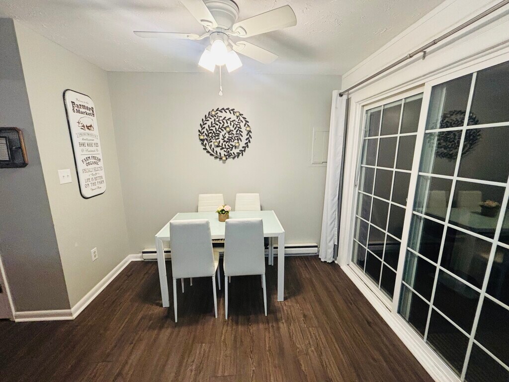 This 2-bedroom, 1.5-bathroom property at 314 W 12th St offers 960 square feet of living space. The exterior offers a practical layout with easy access to the front entrance and a 2-car driveway. Main floor: The living room provides ample room for relaxation and entertainment, a half-bath for convenience with guests, and an eat-kitchen including essential amenities for daily living. The property also includes a washer and dryer for in-home laundry on the main level. Second floor: 2 full bedrooms with 2 closets in each room. The full bathroom on the second floor features a tub/shower combination. Additional amenities include cable readiness, high-speed internet access, and ceiling fans in every room for climate control. Each bedroom is designed for comfort, with sufficient storage space available. Off the kitchen on the main floor, is a covered back porch leading to a fully fenced in backyard. The backyard space is filled with gorgeous flowering native perennial gardens. Shed for storage included in rental.