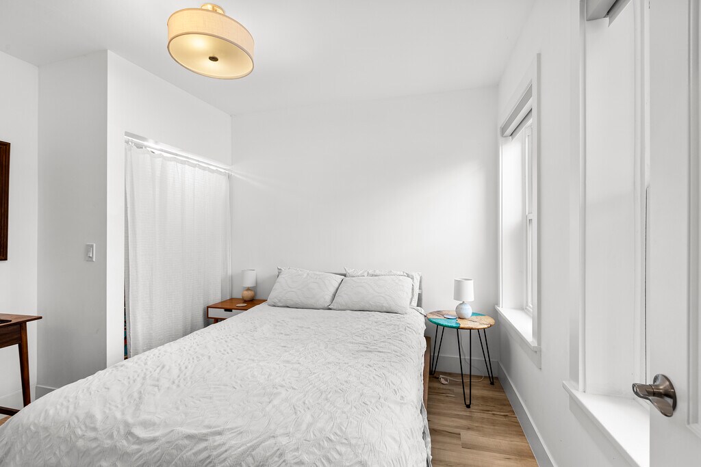 This first floor 2 bedroom, 1 bath unit at 3144 N Spaulding Ave offers in unit laundry, a dedicated laundry room, and a practical layout within a quiet two unit building set back from the street with the only driveway on the block. The apartment includes a full kitchen with breakfast bar, high efficiency forced air heating and central A/C, tankless water heater, double pane windows, keyless entry, and newer 2022 appliances throughout. It’s located one block from the Belmont CTA Blue Line, making it easy to get downtown or to either Chicago airport, and is a short walk to Logan Square’s coffee shops, cafes, and movie theater. Aldi is one block away, with additional grocery options nearby; street parking is permit only.