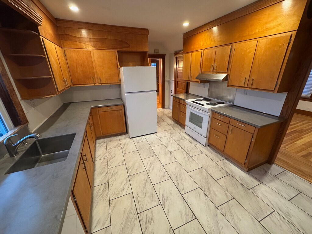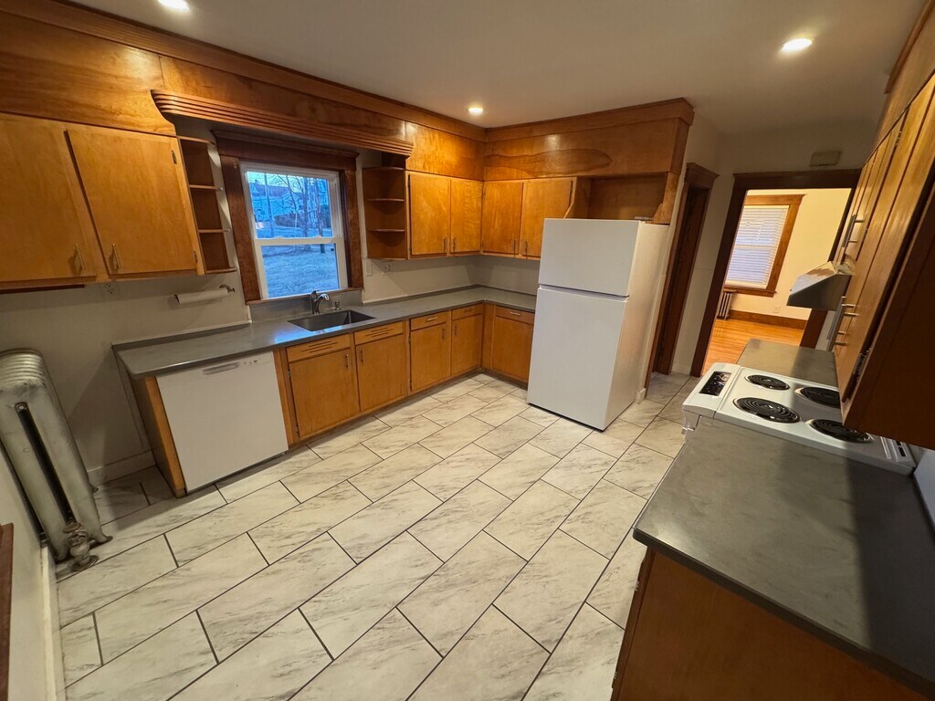 Cozy and bright 3 br/1.5 bath/2 garages with ample off-street parking. Home overlooks the ball fields and park of Northampton Fairgrounds, with views of the Holyoke Mountain Range and farm fields. Downtown Northampton is a short half mile walk. Freshly refinished hardwood floors and all new windows throughout entire house. Insulated by MASS Save this past year and letter of full delead compliance on file. There are two bedrooms, a full bathroom with a tub and shower and several large closets on the second floor. The third bedroom is on the first floor with a generous size walk in closet. The half bathroom is also located on the first floor. There are two garages with ample storage space and room for two cars. The paved driveway provides space for another two cars and room for guest parking. Additional living space includes an enclosed 3 season porch off the kitchen, second floor home office space, a covered front porch and side deck overlooking the ball fields. A generous size yard to the side and rear of the home provide plenty of space for outdoor activities. Onsite washer/dryer located in full basement with concrete floor. April 1 occupancy available or flexible lease start date through June 1. Students Welcome Rent includes water, sewer and complete yard care Tenants pay for electricity, oil heat and trash Pets Considered