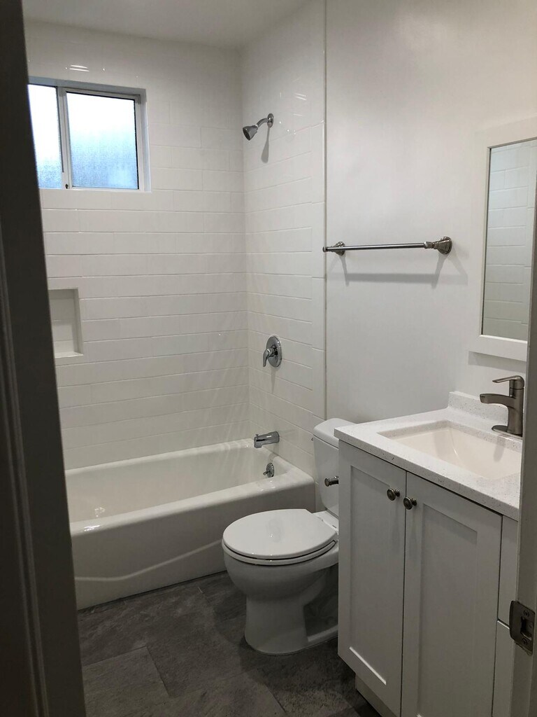 Spacious & Bright downstairs Apt. in a 4 unit quiet building. Remodeled, Kitchen with Quartz counters, Refrig, Stove, Dishwasher & Microwave. Bathroom with tiled shower & tub. Tile flooring through-out. Newer windows, recessed lighting, Wall A/C's & Heater. 1 car, carport parking with storage. Other cars, street parking. Great location, walking distance to quaint downtown Sierra Madre with shops, restaurants, coffee shops. Credit & criminal check required, $ 35 fee. Nearby access to 210 freeway.