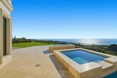 This special brand-new golf estate is a true gem with unobstructed Pacific Ocean and Golf Course Views within a private guard secure community. Introducing a new era of coastal sophistication in this new 5 bedroom with 5 ensuite bathroom estate, perfectly positioned within the prestigious Estates at Trump National Golf Course in Rancho Palos Verdes. Spanning nearly 5,000 sq. ft. of meticulously curated living space, this architectural masterpiece situated on a dream lot captures sweeping panoramic views of Trump Golf Course, the Pacific Ocean and beautiful Catalina Island from nearly every vantage point. Step through grand mahogany doors into a world defined by craftsmanship and comfort. Crema Marfil stone floors, alder cabinetry, and oak wood accents complement three elegant gas fireplaces in the living room, den, and primary suite which leads to a large primary bath with jacuzzi tub and walk in steam shower. The designer kitchen is a chef’s dream, featuring granite slab countertops, a Wolf 6-burner range with griddle, Sub-Zero refrigerator, large wine fridge, dual sinks, two dishwashers, and a custom walk-in pantry with pull-out drawers. Designed for seamless indoor-outdoor living, the residence transforms to an entertainer’s paradise, complete with a lap pool, jacuzzi, outdoor fireplace, and fire pit set against the backdrop of glowing Pacific sunsets and 6+ Trump Golf Course tees enjoyed from the yard and multiple balconies. Every modern amenity is at your fingertips, including a main floor guest half bathroom for convenience, a private elevator ensuring effortless access between the two levels, built-in speakers and lighting control, solar energy, dual-zone AC, and an expansive 1,006 sq. ft. 4-car garage. Located in a 24-hour guard-patrolled community, this new construction residence offers the ultimate blend of privacy, security, and timeless elegance. There is luxury and then there is beyond luxury. Schedule your private tour today and experience the unparalleled luxury of life at Trump Estates.