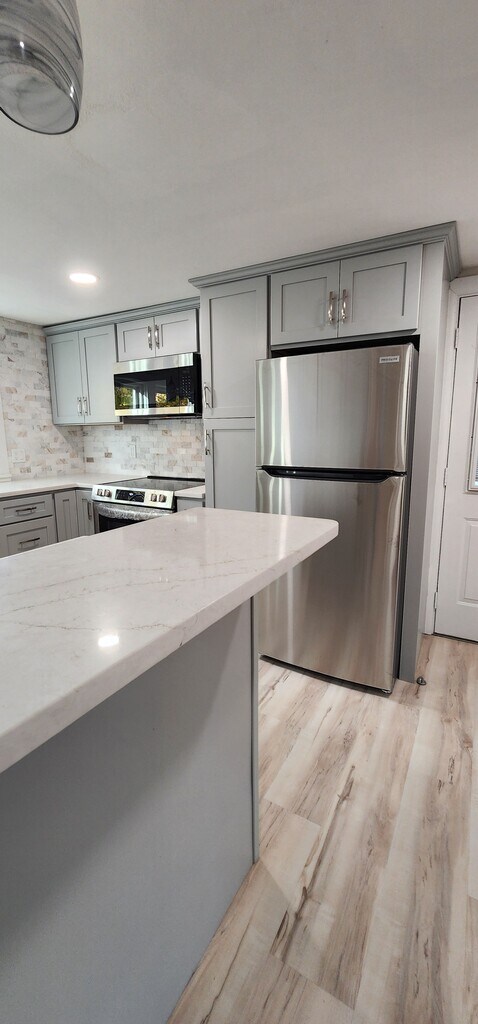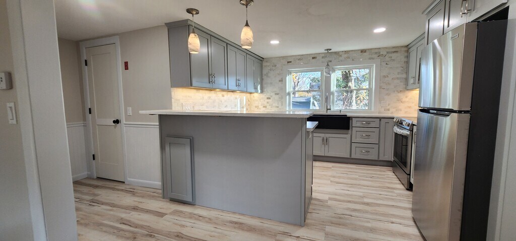 Residential 2- or 3-bedroom house recently updated. Large kitchen with loads of cabinet space, quartz countertops, and stainless appliances. Throughout house - hardwood floors and LVP flooring. Two porches for your convenience. Plenty of extra storage in basement with one finished room. Washer/dryer supplied. The only access to this house is with stairs. This house is on the same lot as a duplex. There is assigned parking. Tenant pays oil and electric. Tenant can pay for a town dump sticker or get private trash removal.