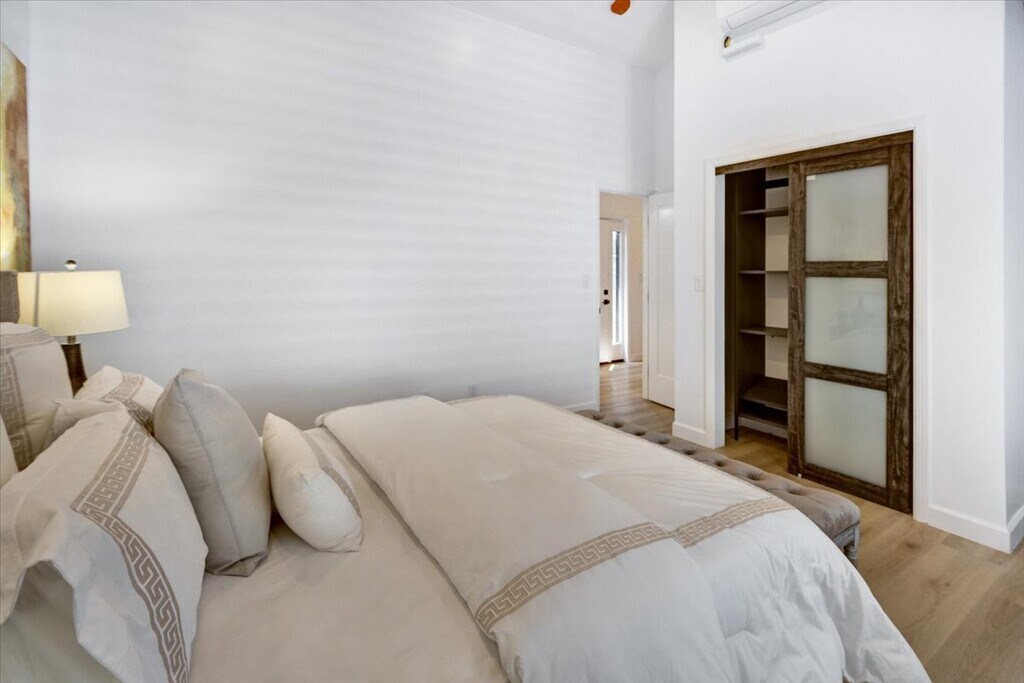 Modern Cottage in West Oakland - A meticulously built modern (2023) home in vibrant West Oakland. The cottage consists of kitchen-living combo, two large bedrooms and one full bathroom. Featuring a modern floor plan, extra high vaulted ceilings, ample natural light, good storage, air conditioning, built-in closet organizers, and designer touches throughout. The gourmet kitchen with custom cabinetry, quartz countertops, and premium appliances will bring the best out of any home chef. High efficiency air conditioning and heating with individual controls for every room, a dedicated laundry room and professionally landscaped shared green space competes this ideal brand new home.