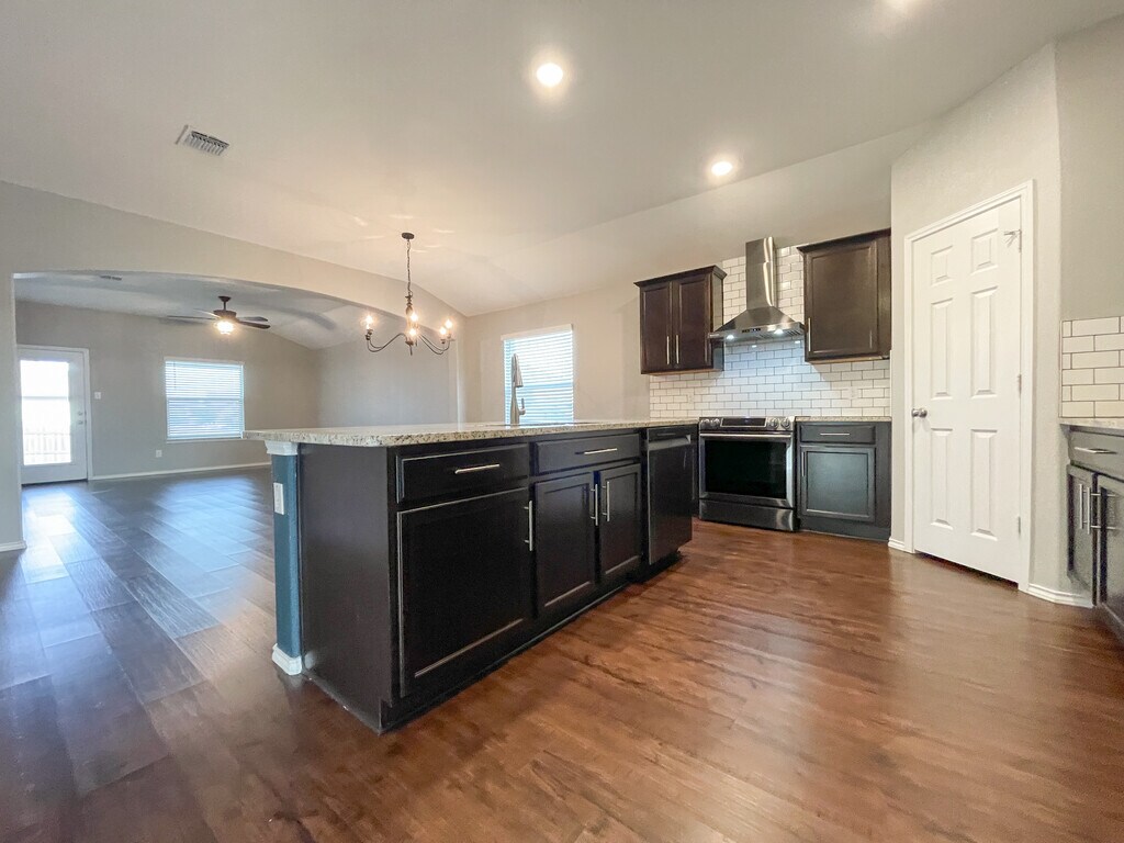 Modern Corner-Lot Beauty in Park Meadows – Midway ISD! Welcome to this stylish 3-bedroom, 2-bath home located on a large corner lot in the desirable Park Meadows subdivision and Midway ISD. Just minutes from I-35, this home offers a fantastic blend of space, function, and contemporary design. Step inside to find vinyl plank flooring throughout and an inviting entry foyer featuring a charming art niche. A large office or flex room provides the perfect space for working from home, a playroom, or an extra living area. The kitchen is a standout, showcasing granite countertops, a beautiful island with barstool seating, a large pantry, and stainless steel appliances including a refrigerator, dishwasher, and electric glass-top range. The kitchen flows seamlessly into the dining area and living room, creating an open, airy layout ideal for entertaining. The living room is accented by a unique shiplap-style feature wall that adds warmth and character. The primary suite offers a relaxing retreat with an extra-large walk-in closet, dual vanities, and a separate soaking tub and shower. The hall bath is spacious with generous storage, and the in-house laundry room comes complete with a front-load washer and dryer for added convenience. Outside, enjoy a large fenced backyard, perfect for relaxing, entertaining, or giving pets plenty of room to play. The property also features an attached front-entry two-car garage plus a third bay, ideal for an ATV, lawn equipment, or extra storage. With its modern finishes, flexible spaces, spacious yard, and prime Midway location, this Park Meadows home is ready for its next tenant—don’t miss this one!