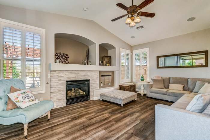 Gorgeous home situated in the highly desired, beautiful desert setting of Dove Valley Ranch in Cave Creek. The home boasts of a lot of natural light, exceptional open floor plan for entertaining, with split bedrooms...Master on one side the rest on the other. Ideal location in the gated community, Emerald Greens, with single level homes on both sides and breathtaking desert sunsets every night from the western facing backyard! This beauty is loaded w/upgrades including maple cabinets w/stylish hardware, faucet, marble backsplash, quartz countertops, tile flooring, gas fireplace. Unfurnished but furnishings are negotiable.