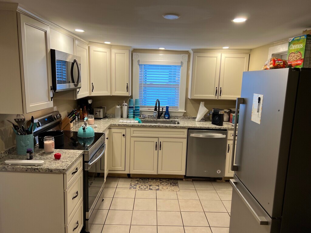 Corner lot, only two units in the building, separate laundry room and washer/dryer for each tenant, quiet, large dining room open to the livingroom, large master with mounted TV and wireless extender, brand new kitchen. This apartment is available furnished only. There is plenty of storage in basement.