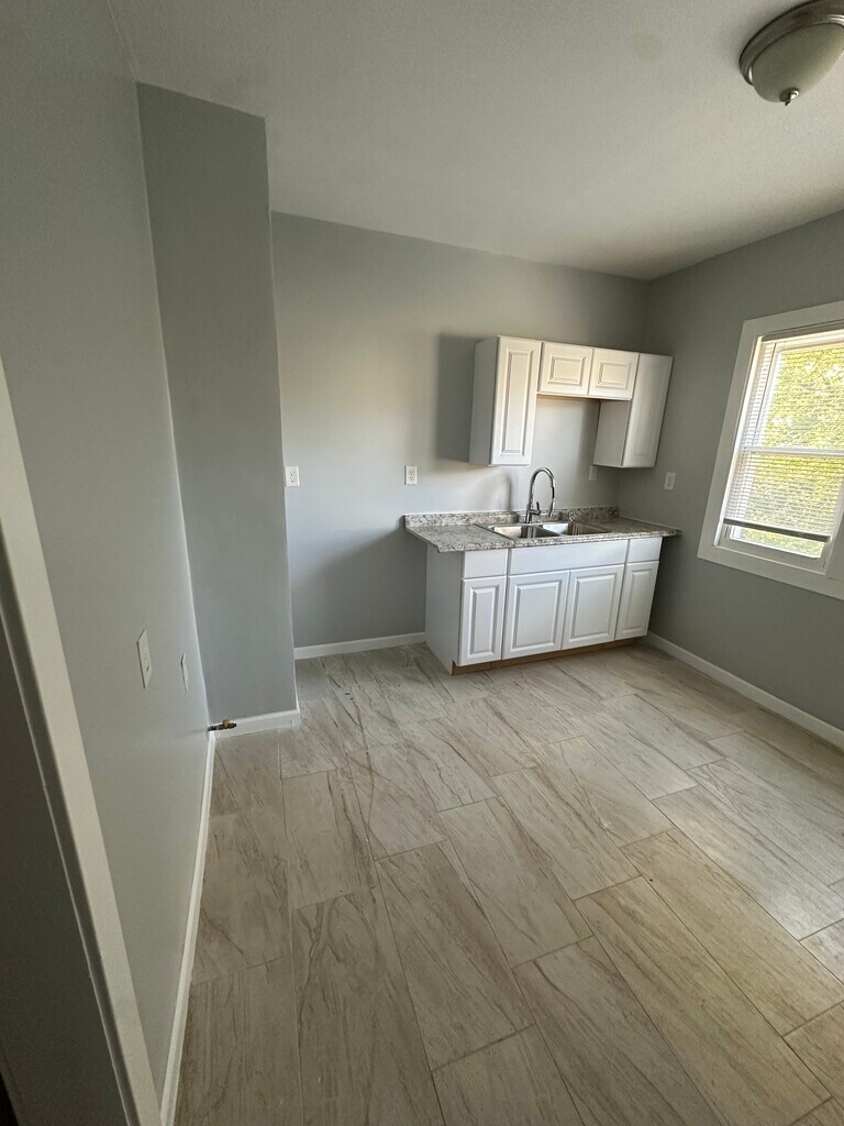 Beautifully updated, Lower three bedroom flat. Enter to the living room of this large, 1,200 sq. ft. space. Freshly refinished hardwood floors will greet you, Coming inside, you move through the living room into your large dining space. Off the dining room, is a fully renovated kitchen with new cabinets, new counter tops. Access to the basement is through the kitchen which is privately sectioned off from the other unit and provides a large amount of storage and laundry hookup. Back in the dining room, down the hall, you will find three large bedrooms. Off the hallway you will also find a fully renovated bathroom featuring subway tile accents! Entire home features newer windows. Gas, water & electric (NOT INCLUDED). Pets are negotiable. 12 month lease term. Pets are negotiable. One off street parking space is included and there is street parking available.