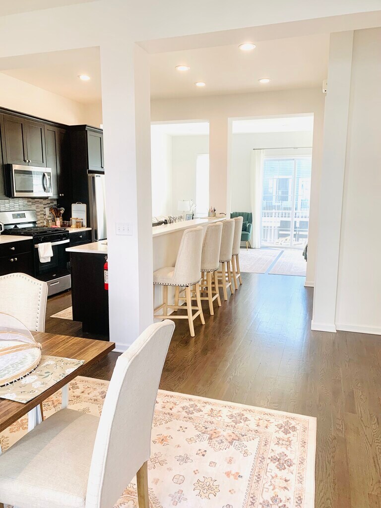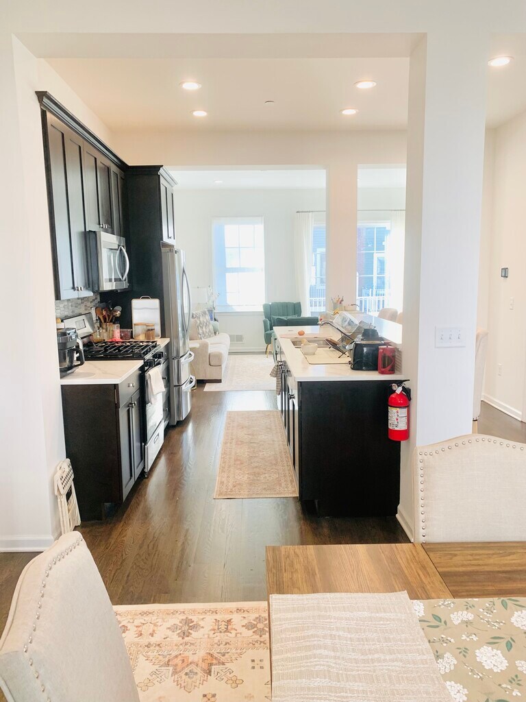 Immaculate and modern 2024 Townhouse, practically new. Open Floor Plan with hardwood floors throughout. 1st floor living area with Very Spacious Living Room w/Gas Fireplace, Modern Eat-in-Kitchen with quartz counter tops and high-end appliances, spacious Formal Dining Room, Huge Balcony off LR for Relaxation and Entertaining, Powder Room, and 9' Ceilings. Front and Rear Entrances on Ground Level with Bonus Room, Full Bath, 1-2-car Garage and driveway for two cars tandem. Primary Suite w/Full Bath, two additional spacious bedroom and hall Full Bath (SOT). Laundry in unit with high-end washer and dryer. Plenty of Closet Space throughout. C/A/C. Pets conditional: cats, small dogs; additional monthly fee may apply. Furniture may be provided for an additional fee. Close to All. Credit Check, Interview, Proof of Income & Identity. All information deemed reliable, not guaranteed. Square footage is approximate.