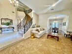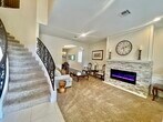 Elegante casa de garaje de 5 dormitorios, 4 baños y 3 automóviles, completamente amueblada, ubicada en un cul-de-sac en Henderson. El hogar cuenta con un patio trasero con una hermosa piscina/spa mejorada, patio cubierto, parrillada incorporada y una cancha de baloncesto de media cancha para practicar sus aros. Mobiliario contemporáneo en todo el hotel. Ingrese a una sala de estar hundida con chimenea a gas y un comedor separado junto a la cocina gourmet. La cocina cuenta con una gran isla, encimeras de granito, mucho espacio de almacenamiento y mostrador, y está abierta a la amplia sala familiar. Amplio dormitorio en la planta baja con baño auxiliar junto a la habitación familiar, pero escondido para mayor privacidad. En el piso de arriba encontrará un loft extragrande con un escritorio doble incorporado, perfecto para un espacio de trabajo remoto. La suite principal es independiente de otras y ofrece asientos adicionales, balcón privado con magnífica vista a las franjas, chimenea de doble cara que se abre al baño con lavamanos doble, bañera/ducha independiente y amplio vestidor. Silencioso, tranquilo y totalmente equipado con todas las sábanas, utensilios de cocina, etc. Simplemente traiga su ropa, artículos de tocador y comida y estará listo para relajarse en su propio oasis.