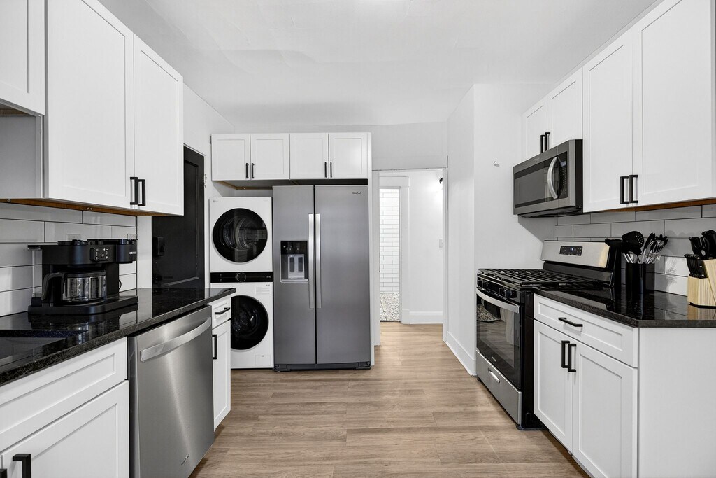 Newly renovated 2+ bedroom across the street from Cain Park in beautiful Cleveland Heights. All new modern kitchen, stainless appliances, in-unit washer/dryer, upgraded fixtures, quartz countertops, tile/glass walk-in shower, luxury vinyl flooring, keyless entry and private garage provide everything you need to live, play and work at home. Minutes from Cleveland's University Circle, restaurants, shopping, hospitals, museums, recreation and transit. Triplex, second floor unit.