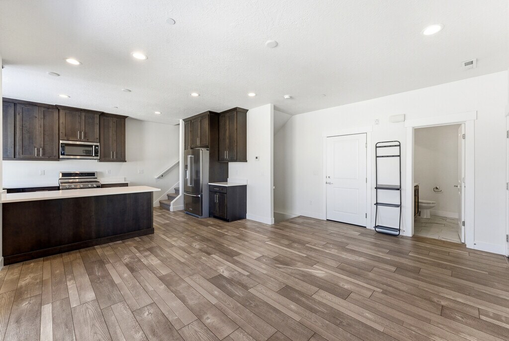 Beautiful row-end townhome in the desirable Quarry Springs community. This unfurnished three bedroom, three bathroom home offers 1,167 square feet of comfortable living with an open great room, fireplace and walkout to a wraparound deck with mountain views, perfect for relaxing or entertaining. The owner’s en-suite includes a walk-in closet with a stackable washer/dryer, plus a second laundry hook-up downstairs for added convenience. Two additional bedrooms are located on the lower level with a full bath, and one offers direct access to a spacious patio. Additional features include a 2-car garage, driveway parking, water softener, and zoned heating and AC. Enjoy low-maintenance living with HOA-maintained landscaping and access to the community clubhouse with a seasonal pool and hot tub. Ideally located near freeway access, trails, parks, shopping, and restaurants. The information contained herein is furnished to the best of knowledge. Tenant and/or tenant's agent to verify the accuracy of all information. This information is subject to change without notice. Brokerage assumes no liability for accuracy of information.