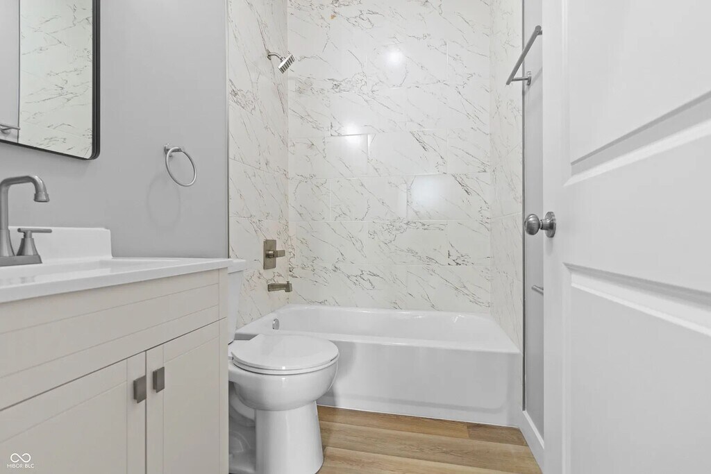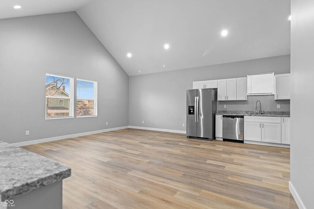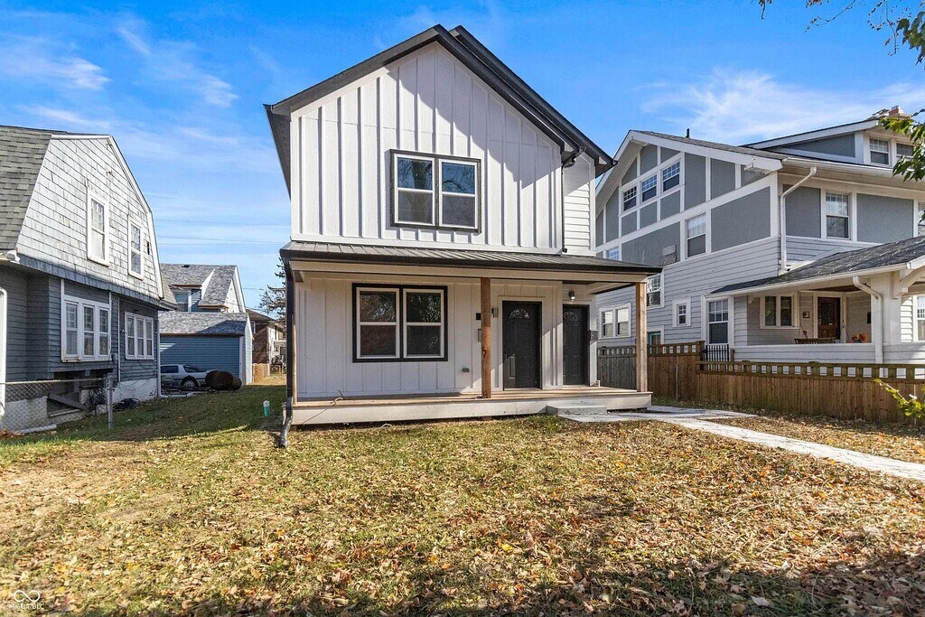 Brand New Construction townhome available FOR RENT with 3 bedrooms,2 full bathrooms and conveniently located between Downtown Indianapolis (10-minute commute) & Broad Ripple (12-minute commute). Experience the comfort of living in a brand-new townhome in the heart of Indy-thoughtfully designed with modern finishes,spacious living,and effortless convenience. Step inside to an open-concept main level filled with natural light,recessed lighting,and beautiful luxury vinyl plank flooring throughout. The kitchen features crisp white cabinetry,granite countertops,and stainless steel appliances,all overlooking a large living and dining area perfect for entertaining or relaxing after a long day. The main level offers a generously sized bedroom and a full bathroom with sleek marble-style tile-ideal for guests,an office,or main-floor living. Upstairs you'll find two additional bedrooms,including a bright primary suite with its own full bath and modern finishes. Enjoy the convenience of a fully equipped laundry room,private driveway with ample off-street parking,and a covered front porch perfect for morning coffee or evening unwinding. The brand-new construction means peace of mind,efficiency,and low-maintenance living from day one. Located in an established neighborhood with quick access to restaurants,the Monon Trail,hospitals,universities,Broad Ripple Village,and the energy of Downtown-this home places you right where you want to be. Available now. Don't miss the chance to be the first to live in this beautiful new townhome. Reach out today to schedule a tour!