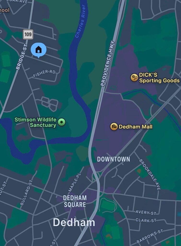 Está localizado en el barrio Riverdale, 34 Bingham Ave en el código postal 02026 de Dedham, MA.
