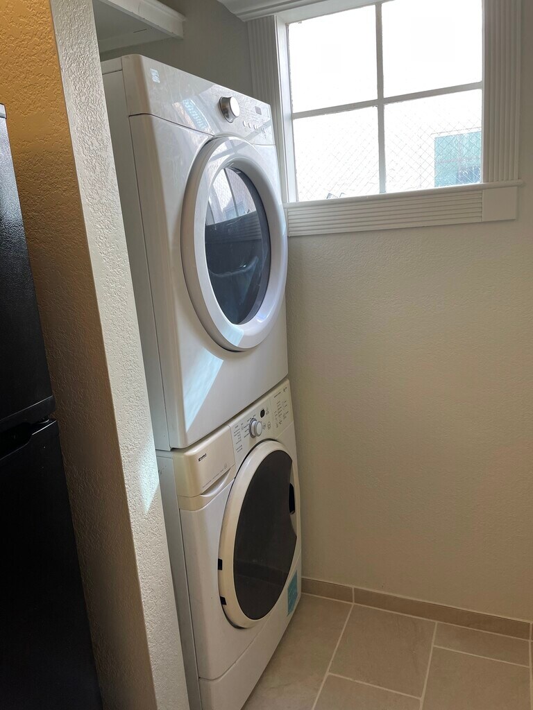 Eliminate your commute with this spacious apartment just minutes from Downtown Phoenix and the Camelback Corridor! Enter spacious apartment with brand new tile throughout. Bright and open master bedroom, attached bath and French doors opening to a backyard with your own storage unit. Stackable washer and dryer, kitchen with lots of counter space and a large dining nook. Two bed/two full baths makes this perfect for two renters. Water/sewer/trash all included, electric separately metered. This one rents fast!