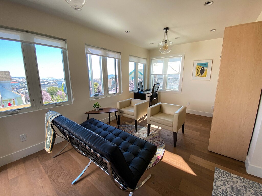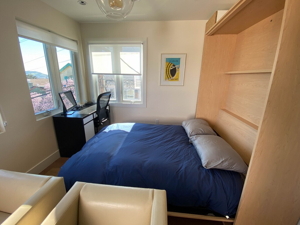 Will rent Furnished or Unfurnished, Short or long term rental O.K. All you need Is your suitcase! Fantastic Bernal location, walking distance to Bernal Village (Bernal Library, Good life Grocery, Epicurian Trader, Pinhole Coffee, Avedano Butcher, many restaurants) hiking on Bernal Hill and strolling around Holly park. 400 square foot bedroom space in our home with private entrance, bathroom, Full Kitchen, Dishwasher, Washer/Dryer and Private access to Yard. This is a bedroom in our home and is subject to rent under the Lodgers Civil Code Section 1946.5, and as such is not subject to SF Rent Board or Rent Control.