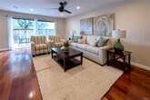 Designer perfect end unit townhome. Direct access 2 car garage features an attached room (app. 300 sq ft.), which is a completely finished entertainment/office area with cabinetry, TV hookups and furnishings. Brazilian cherry hardwood floors, wine refrigerator, and private patio make for great entertaining in the large living room, wired for surround sound. New carpet just installed with upgraded padding. Entire interior has just been professionally painted and cleaned. Beautiful kitchen with granite countertops and stainless steel appliances. Refrigerator and Samsung washer and dryer included, without warranty. Spacious Primary Bedroom features a huge walk-in closet with built-ins, plus an additional large separate closet with built-ins. Step inside and prepare to be impressed! First available showing at Open House Saturday and Sunday, February 7-8, from 2-4 pm. Exclusive listing agent: Corey Cohn, Home Team Realty. Strong credit with no prior rental issues, please.