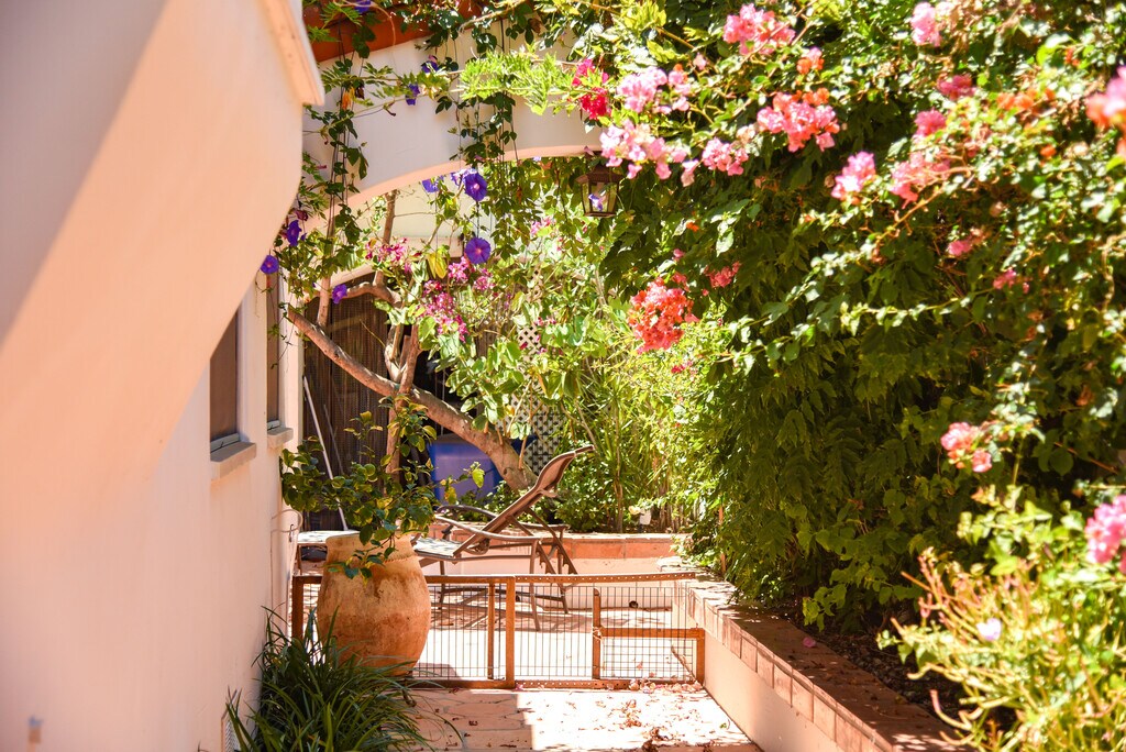 A luxurious, partially furnished Beverly Hills oasis. Secluded, Peaceful, Spanish, with old-world charm, hardwood floors, ample walk-in closet space, skylights, ground level off-street parking, central air conditioning, and verdant gardens. Shared laundry included on the premises. Private entrance into a private suite with a fabulous, very spacious bedroom having a high quality queen size bed, flat screen television, and framed floor to ceiling mirror. The bathroom features a large tub, large shower, Toto toilet beneath a glamorous skylit ceiling. The living room/den/office has ample closet space, bookshelves, sofa and flat screen television. Kitchen has skylight, two burner cooktop, microwave/convection oven, fridge, and pantry. The high walking score, close proximity to all that Beverly Hills has to offer: markets, cafes and shops makes this a very special home.