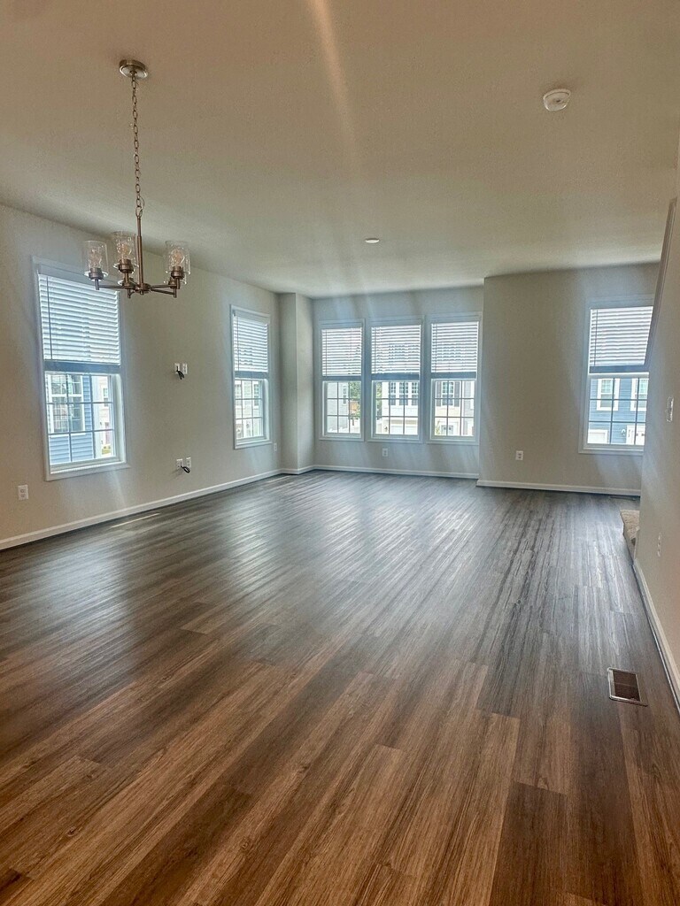New construction 3 bedroom, 2.5 bathroom townhouse in the Townhomes at Evershire community now available. Main floor amenities include a one-car garage as well as a bonus room perfect for a home office or rec room. The second floor boasts 9 foot ceilings and houses a well-appointed kitchen with granite countertops and stainless steel appliances, living space, and dining area, as well as a half bath. A spacious deck, perfect for entertaining, is accessible from the kitchen. Bedrooms are on the third floor. The master is an ensuite with double vanities and ceramic tile showers plus a walk-in closet. There are two additional bedrooms which share a full bath. Washer and dryer included. Sorry, no pets allowed. No utilities included.