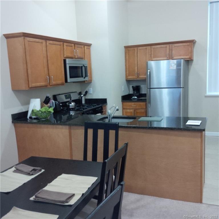 Seldom available 2 bedroom first floor unit on the Farmington River in downtown Unionville, CT. Maple cabinets, granite counters, SS appliances. High ceilings, with large windows afford an abundance of light. Walk to restaurants, shops, grocery, pharmacy, and more. Pet by approval
