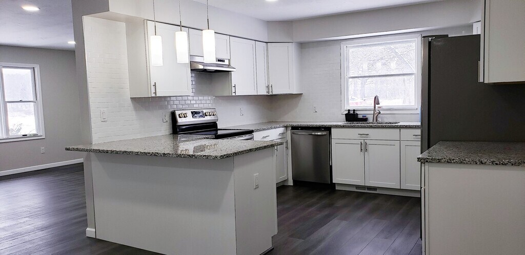 Próximamente, finales de enero de 2024. ¡Bienvenido a casa! Hogar de 120 metros cuadrados/1.350 pies cuadrados con tres dormitorios y dos baños completamente remodelados en el pueblo de Sanford. Esta casa ofrece una vista del parque de bolas y el río Sanford. La amplia cocina cuenta con nuevos armarios con electrodomésticos de acero inoxidable y encimeras de granito. Peninsula ofrece un lugar para que los huéspedes se sienten cuando se entretienen. Comedor de concepto abierto con estudio adyacente que tiene acceso a la puerta corrediza para cercarse en el patio trasero. La amplia sala de estar cuenta con una chimenea y ofrece una magnífica vista al parque y al río. Tres amplios dormitorios con pisos nuevos en todo el hogar. Dos baños con pisos de azulejos nuevos, uno con bañera y otro con ducha con azulejos. Garaje con dos coches y entrada al barro con conexiones para la lavandería. Iluminación LED en toda la casa para ahorrar en sus facturas de servicios públicos. La estufa, el lavavajillas y el refrigerador se suministran con el hogar. Las conexiones de lavandería están disponibles para sus máquinas.