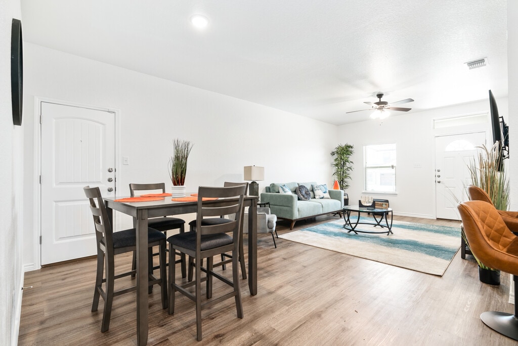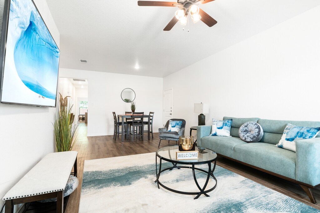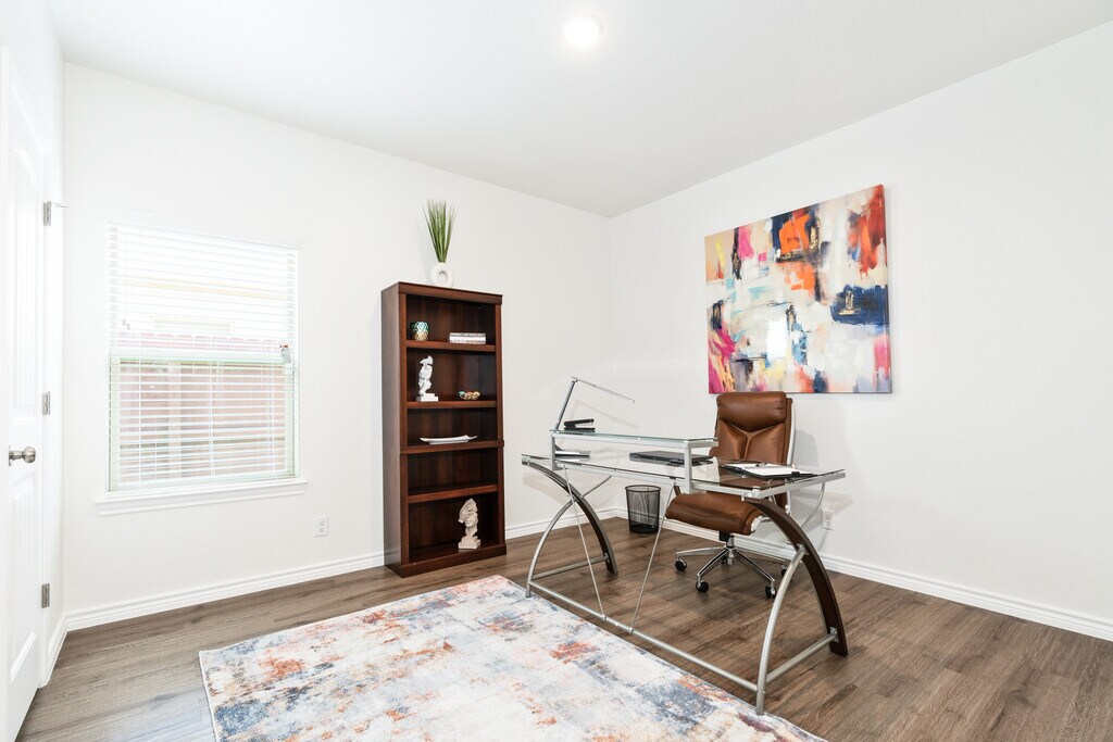3511 Abraham Dr. unit B, Killeen TX- Fully furnished duplex in a newer subdivision; very stylish, comfortable and contemporary living. Includes all utilities, internet/WiFi, cable and lawncare services. Our 3 bedroom (1 room converted into an office) 2 bath duplex features a 1 car garage, 2 car driveway, privacy-fenced backyard, security/alarm systems, washer/dryer, 75-inch smart TV, and fully equipped with all household amenities and essentials.