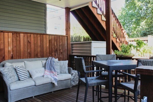 ALQUILER A CORTO PLAZO POCO FRECUENTE. Vive en la calle más codiciada del sur de Boston, rodeada de árboles y piedras marrones por excelencia, y a pocos pasos de mercados, playas, parques y todo lo que Broadway tiene para ofrecer. En este hermoso baño de dos camas y media completamente amueblado, será recibido por relucientes pisos de madera y toneladas de luz natural. Con dos pisos de estar distribuidos en más de 100 metros cuadrados/1.100 pies cuadrados, disfrutará de la paz y la tranquilidad de los dormitorios extragrandes en el piso inferior y del concepto abierto en el piso principal. El segundo dormitorio está amueblado actualmente como una oficina que puede quedarse o dejarse vacante para su propio dormitorio o uso único. Al aire libre, disfrute de un oasis completo con una terraza privada, patio y una gran valla en el patio, ideal para disfrutar del clima cálido de Boston. El aire acondicionado central y la lavandería en la unidad completan este maravilloso hogar. Muévase sin preocuparse por el mobiliario; la cocina estará equipada con todo lo que necesita y también quedará un Peloton. ¡Aparcamiento fuera de la calle disponible para alquilar!