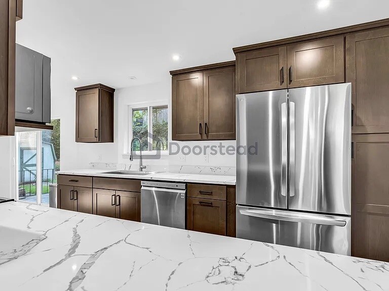 Welcome to your new, beautifully remodeled rambler-style home! This home sits on a half acre lot at the end of a cul de sac, perfectly situated in between trees with two streams on either side of you. The two streams (perfect for exploring) offer a calming constant rushing water sound throughout the property helping you to escape the busyness of life in the greater Seattle area.The two large yards one fenced in and the other open will enable you to have a park-like environment at your own home! Inside: This newly remodeled home has all modern and new appliances which are primarily standardized to the LG brand. Waterproof floors have been newly installed throughout the house making for an easy clean. The large 3 sided wood fireplace is the perfect center piece and completely functional! Outside: This home sits on nearly an acre of land including a long driveway that can comfortably fit up to 7 cars. The home also has two large yards in the front and a small yard + patio in the back. One front yard is nestled up to a forest, while the other side is fenced in providing a great outdoor space for your pets! In addition there are two raised planter beds in the back with strawberries planted. Details: 4 bedrooms 2 bathrooms Washer and Dryer 1,767 sqft .45 Acre lot Shed included for extra storage Requirements / Important Items Of Note: Pets are allowed - The first pet will be an additional monthly fee of $100 and every additional pet will be a fee of $50 with a maximum of 3 pets. Utilities and garbage will be purchased by the renter. First and last months rent will be required prior to move in. A security deposit will be required prior to move in at the price equal to one months rent. A minimum credit score of 690 will be required by all residents over the age of 18. Income must be 3 times the monthly rent. The renter will be allowed to utilize a shed at no extra cost. - Pets are allowed - The first pet will be an additional monthly fee of $100 and every additional pet will be a fee of $50 with a maximum of 3 pets. - No Smoking - Utilities and garbage will be purchased by the renter. - First and last months rent will be required prior to move in. - A security deposit will be required prior to move in at the price equal to one months rent. - A Business may not be run out of this property. - Renters must maintain the lawn's/yard. - No parking allowed on the lawn or grassed areas. - A minimum credit score of 690 will be required by all residents over the age of 18. - Income must be 3 times the monthly rent.
