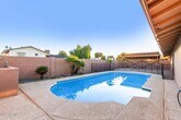 This gorgeous 4 bed, 2 bath residence in Deerview boasts an easy-care desert landscape, great curb appeal, and a 2 car garage. Inside you will find spacious dining & living areas and neutral palette throughout. The kitchen comes equipped w/ample cabinetry & counter space, as well as all the built-in appliances you'll need for home cooking and a serving window. End your busy day in the primary bedroom, boasting a private ensuite for added comfort. Lastly, the wonderful backyard includes a patio area w/a lovely gazebo, a sparkling blue pool, and back alley access! Enjoy the added benefit of Solar Savings, making this home both eco-friendly and cost-effective! Home has many other upgrades including new floors and Freshly Painted and many more !!. Hurry to see this one as this space is rare and hard to find! Non refundable pet cleaning fee : 150$ And Pet deposit : 250$ Pool maintenance is included in the rent. No smoking.