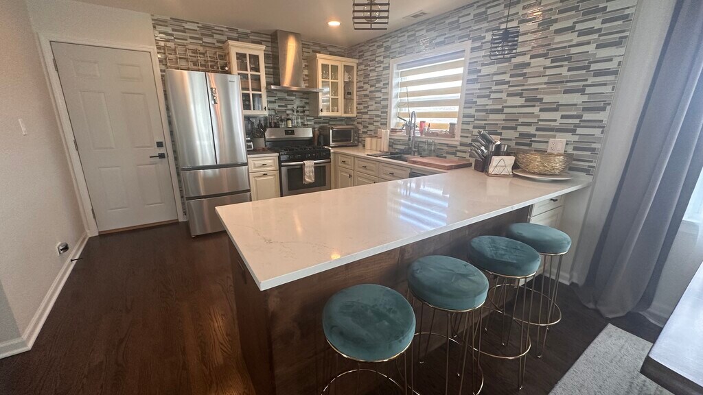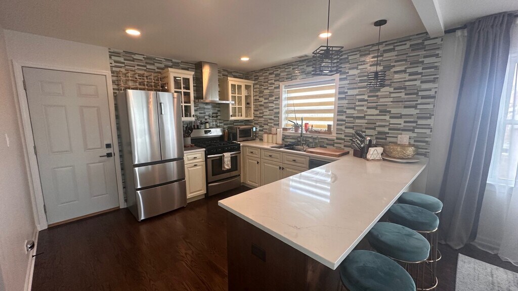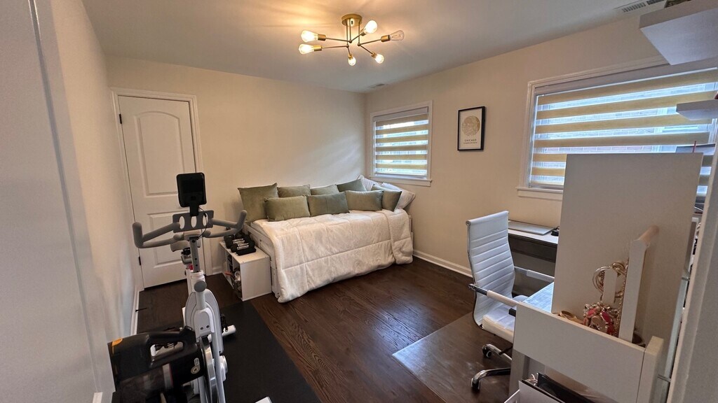 A newly remodeled modern unit in a quiet part of Des Plaines. Walking Distance to the Metra stop, stores/shops downtown Des Plaines and close to the highway (294). Open floor plan with large windows makes the space feel larger than it is. The unit has 2 spacious bedrooms, 1 bathroom with a double sink, in-unit washer/dryer and 3 closets. The kitchen is a home chef's dream with a large island. The property lives like a single family home with only one neighbor below, a back yard and one garage with a parking space in the driveway. The unit is pet friendly (limit 1, small pet). **Unit does not come furnished. Property is owned by a licensed real estate agent.**
