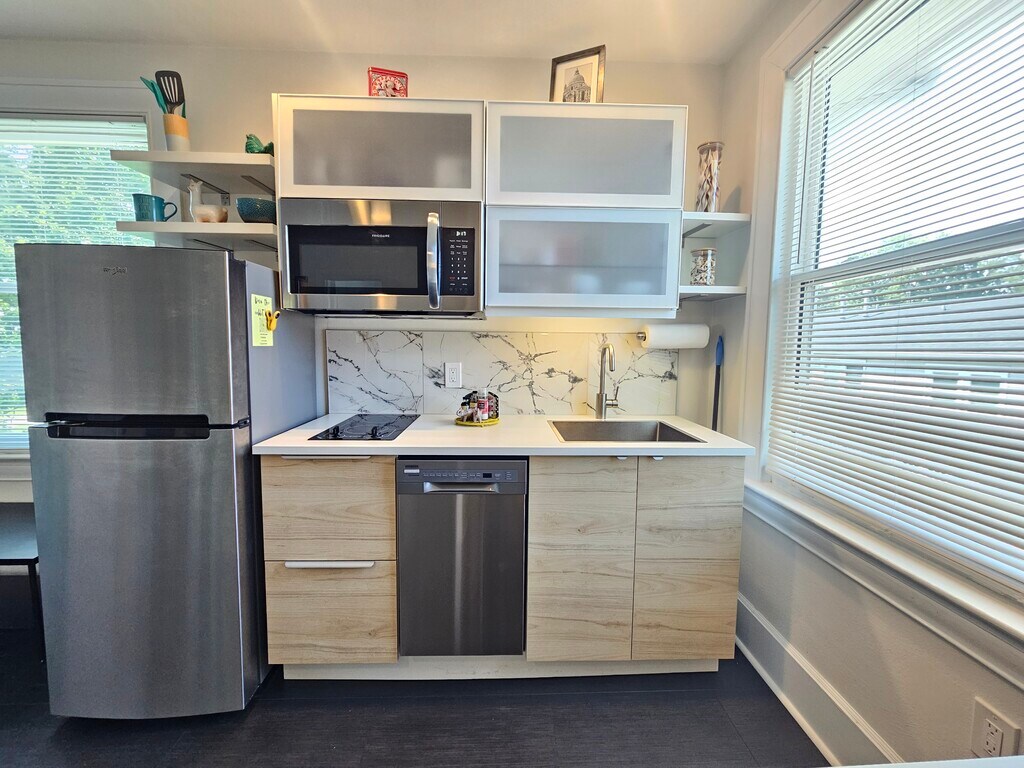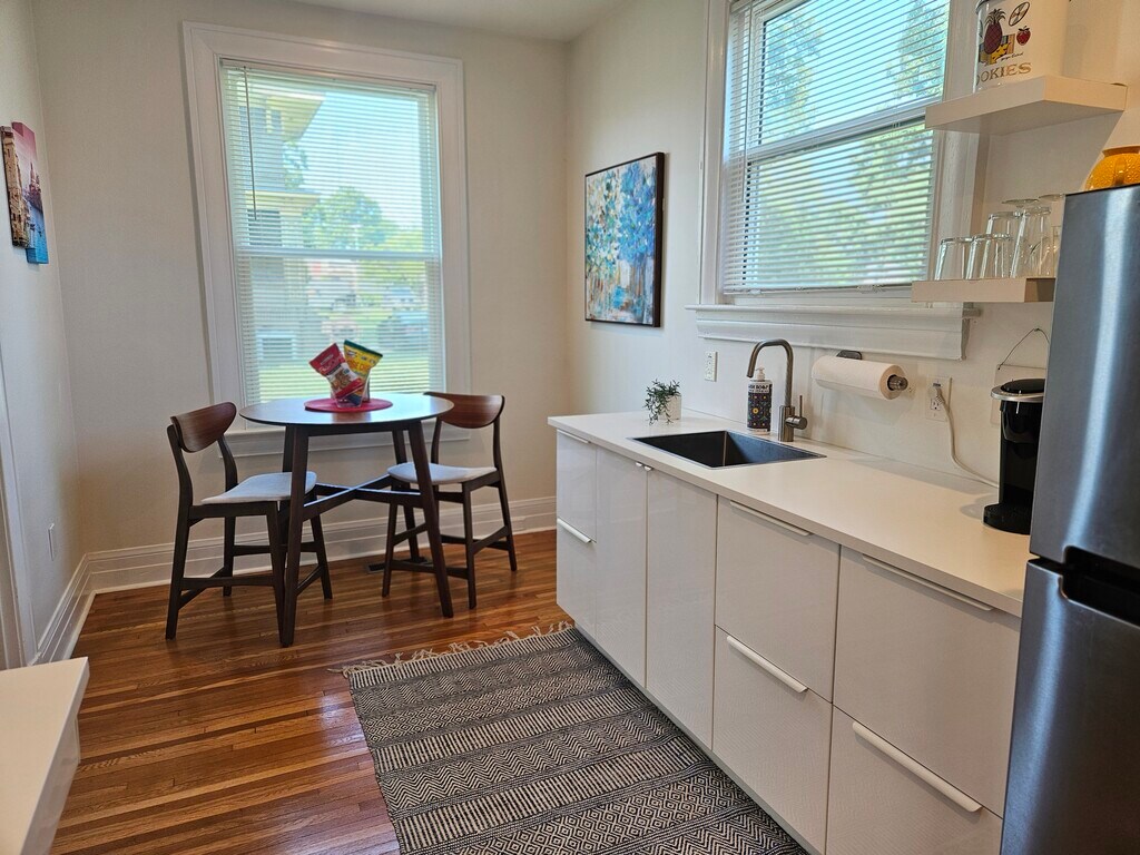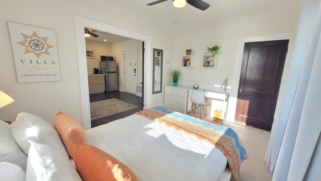 Villa Forte - Ideal for one These newer fully furnished apartments in Villa Forte, were designed for the comfort and functionality of traveling professionals. They are perfectly suited for business travelers, health care professionals and graduate students needing a modern, quiet, relaxing place to stay. Unlike the average corporate housing, which can be impersonal at times, we are a smaller business and as such are able to closely and personally care for our guests' needs. Our goal is to provide a warm home to come to not simply a place to stay. Villa Forte is centrally located within minutes of all colleges, the hospital and downtown. Restaurants, shops and public transportation all conveniently nearby. These apartments offer off street parking, high ceilings, private patios, original hardwood floors, large windows, new kitchen, new bath, new AC and remote controlled fans with laundry on site. With a smart, clean, euro look, these are a home away from home. Enjoy out of the ordinary apartment living at Villa Forte. Free parking and an office center for your convenience. NO smoking of any kind on the premises.