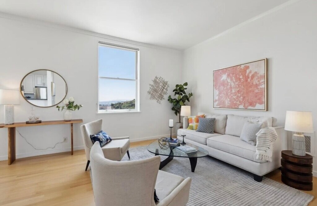 Bright and exceptionally quiet one-bedroom residence with high ceilings and sweeping southern views over the San Francisco Bay, the Mission, Dolores Park, Bernal Heights, Corona Heights, and Twin Peaks. Located in the historic Park Hill building (on the National Register of Historic Places), known for its private gardens, concierge service, and secure gated entry. Features: • Panoramic Bay & city views • High ceilings and abundant natural light • Very quiet unit (no street or car noise) • Parking included • Laundry on the same floor • Concierge, security, and controlled access • Private landscaped gardens for residents • Adjacent to Buena Vista Park • Close to Haight-Ashbury, Castro, and transit Shown by appointment.