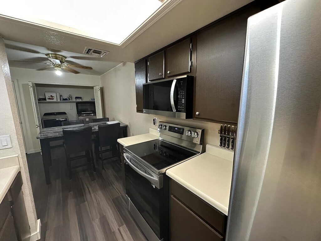 Beautifully Remodeled Furnished Condo in Gated Laughlin Community Enjoy comfortable, easy living in this beautifully remodeled condo located in a quiet, gated community in Laughlin, Nevada. This well-maintained home offers a stylish, inviting space with everything you need for a convenient longer-term stay. Property Features Beautifully remodeled with updated finishes Fully furnished with modern décor and essentials Spacious, comfortable layout Well-equipped kitchen with appliances, cookware, and dining essentials In-unit laundry Private patio/balcony Covered assigned parking included Community Amenities Gated community Pool Gym Pickleball courts Clubhouse Location Conveniently located near casinos, the Colorado River, shopping, dining, and outdoor recreation. Lease Terms 6-month lease minimum Water, sewer, and trash included Screening and security deposit required Renter’s insurance required No smoking Pets may be considered with an additional deposit For leases of one year or longer, the unit may be leased unfurnished if needed This is a great opportunity to enjoy a clean, updated home in a peaceful and secure Laughlin setting. Contact for availability and additional details.