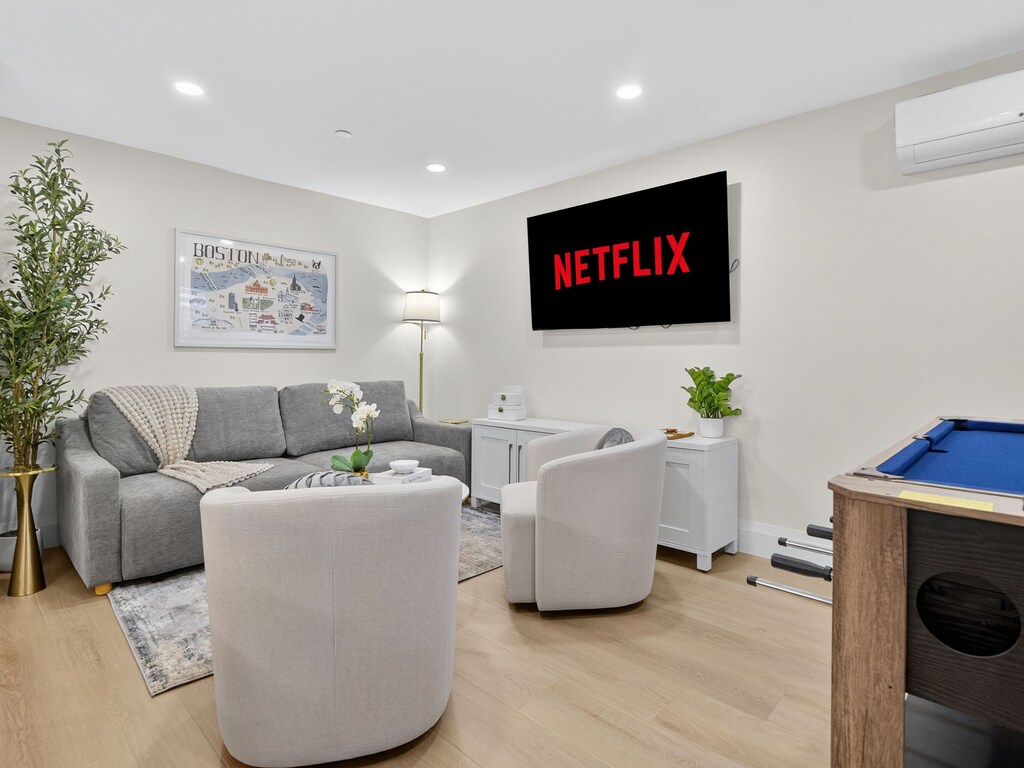 Welcome to our stunning 4BR3B home, minutes from Harvard, MIT, BU, Central Square, MBTA Quartz countertops, stainless steel appliances, hardwood floors, and a private deck. With central heating/air, energy-efficient appliances, and in-unit laundry, this home offers modern comfort and luxury **Dates go quickly! Message us today about special rates. If this home isn’t available, we manage other places in town and would be happy to find the perfect fit for your stay **Ground floor HOME FEATURE 4 BEDROOMS - Smart Lock - Full length mirror - Closet with hangers - Hair Dryer - Nightstand - Desk & Chair - A/C & Heater - Pack ‘n Play Bedroom 1 with Queen Bed Bedroom 2 with Full Bed + Twin Bed Bedroom 3 with Queen Bed Bedroom 4 with Queen Bed Sofa bed Twin Air Mattress (5x) 3 FULL BATHROOM - Bathrooms stocked with shampoo, conditioner, body wash, hand soap - Towels (bath towel, hand & hair towel, bath mat) are provided - Newborn/Infant/Toddler/Baby Bathtub KITCHEN - Fully equipped kitchen with pots/pans, toaster, microwave, oven, coffee machine, coffee, kitchen knives, bakeware, dinnerware, coffee mugs, wine glasses, cooking utensils, kettle, tea, basic condiments, and more! - Dining and Utensil Set (BPA free, Dishwasher Safe) - Dishwasher - 2 in 1 Dining & Board Game Table - High Chair LIVING AREA - 55” Smart TV with Netflix - Shoe Cabinet & Indoor Slippers - Sofa bed - Reading Lamp LAUNDRY - Washer and Dryer (in-unit & free) with laundry pods and dryer sheets - Iron & Ironing board - Steamer - Cleaning tools GAMES & ENTERNTAINMENT - Multi-use Game Table: Hockey, billiards, football & ping pong - Arcade Classics: Pacman & NBA Jams machines - Family Favorites: Uno, Jenga, Yahtzee, Dominoes, Codenames, Connect 4, Bingo, Tic Tac Toe, Sudoku - Party Games: Ring Swing, Shut The Box, Magnetic Dart, Ring Hook Tossing - Step Pad Games: Dance & Rhythm Games, Mini Arcade Games (Whack-a-Mole, Pattern Memory), Fitness (Yoga, Cardio Workouts) - Fun Zone: Electric Fishing, Connect 4, Shut The Box, Sticky Ball Dartboard, Ring Toss Water Handheld, 8-in-1 Board Game (Chess, Dinosaur Race, Beast Fighting Chess, Aeroplane Chess, Snake Chess, Adventure Chess, Bowling Game Sets) PARKING 2x parking pass will be provided for street parking **Kindly follow the detailed instructions provided to ensure you park in the correct area** DRIVING DISTANCE TO POPULAR LOCATIONS 2 mins to Harvard/MIT 2 mins to Central Square 2 mins to Whole Food 7 mins to Fenway Park 7 mins to Boston University 10 mins to Porter Square 10 mins to Assembly Row 10 mins toTD Garden 10 mins to Downtown Boston 12 mins to Boston Logan Airport 10 mins to Boston Convention & Exhibition Center HOUSE MAINTENANCE Trash pick up (Friday) PROPERTY DISCLOSURE We employ security and safety measures for our guests and neighbors. Thus, the following devices are installed: - 1 doorbell camera and 1 active camera located on the exterior of the property and in no way/shape/form point inside the house to protect your privacy. Devices are on 24/7. - Smart home device that detects noise decibel levels inside the home. This device also has the capability of detecting smoke from cigarettes, marijuana, and vape pens. The device does not record video or audio (***) We provide our guests with contactless self check in. You will have access to the entire rental unit for your trip Please notice that the actual address of the listing will be provided 48 hours before check-in. We always want you to be safe at all times The address automatically populated on the listing is less than a block away from the house. All location distances in the descriptions are in regards to the actual address Check-In Time: 4PM Check-Out Time: 10AM *You must be 25 years or older to book this home and a government issued ID will be required to confirm the reservation.