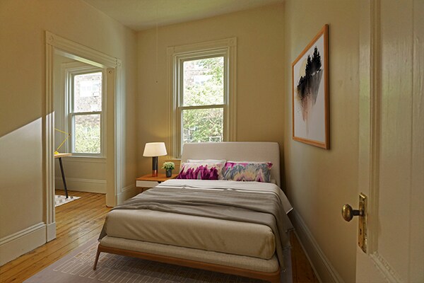 Spacious 2-Bedroom + Study in the Heart of Inman Square! **text or email for a video tour!** Located in vibrant Inman Square, this large top-floor 2-bedroom apartment features an extra room off the bedroom, perfect for a study or home office. The unit boasts hardwood floors and Harvey double-hung windows, providing plenty of natural light. Enjoy the convenience of in-unit laundry with an electric-powered, vent-less system. Shared patio space in the rear offers outdoor relaxation. With a Walk Score of 95, you're steps away from a wide array of shops, restaurants, and access to nearly all MBTA bus lines. Cats allowed with approval; no dogs. First month’s rent due with application. Last month’s rent and a full security deposit are required within 3 business days of approval.