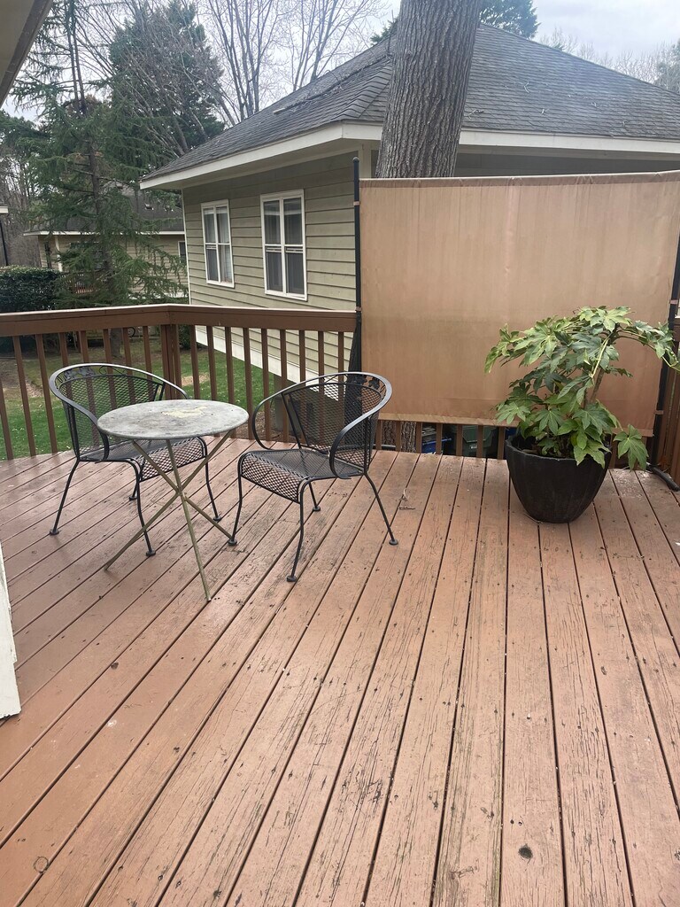 Fully Furnished and All utilities included! Fantastic location in quiet Northwest Raleigh neighborhood located close to UNC Rex Hospital, RDU airport, Umstead Park and Lenovo Arena. Stand alone unit with no shared walls. One bedroom condo with plenty of storage space underneath. Large deck. Pets welcome. The kitchen features marble counter tops, refrigerator, oven, and dishwasher. New washer and dryer located in storage area.