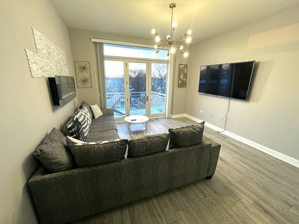 Bright and modern three bedroom, two bath condo with high ceilings, great natural light, and an open layout. Updated kitchen with stainless steel appliances, custom cabinetry, and plenty of counter space opens directly to the living area, which features a modern electric fireplace. Two private balconies provide great outdoor space. Brand new carpet has been installed and most walls feature fresh paint. In unit washer and dryer included. The primary bedroom offers a private bath and a walk in closet. Furniture is included. Building amenities include camera monitored security, elevators, a fitness room, heated garage, assigned parking, and storage. Excellent location near shopping, dining, public transportation, forest preserves, and O Hare Airport. Rental requirements include a minimum 700 credit score, verified income of at least 4 times the rent, no pets, and no smoking. Clean, well maintained unit in a professionally managed building. Minimum lease term is 1 year. Longer lease terms may be considered. NO smoking or pets. Security deposit equal to one month's rent due at lease signing along with first month's rent. Water, trash, heat, gas, and building amenities are included in the rent amount. Tenant pays for electricity, wifi, and any optional services. In unit washer and dryer provided for tenant use. One assigned parking space and one storage unit included. This is a professionally maintained property and pride of ownership is expected.