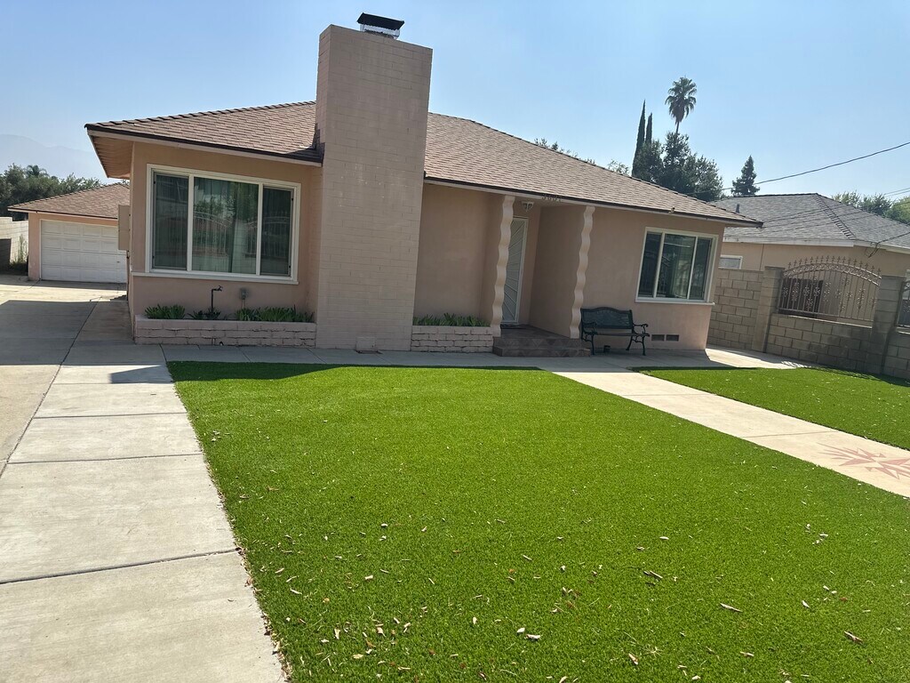 A gated, cozy and charming 2 bedroom 1 bathroom furnished house on a quiet street of the best area of San Bernardino city. Very safe and private. 10 ft concrete block fence in the back of the house and 6 ft iron gate in the front. A beautiful renovated kitchen and bathroom with granite countertops and stylish cabinets. New central AC and heater. Laminate floor. New double pane windows. LG washer and dryer in the laundry room. New stainless steel fridge, dishwasher and microwave in the kitchen. The detached garage in the back is NOT included in the rent. There is a long driveway in front of that garage. The tenants can park a few cars on the driveway. If the owner needs to come and get some stuff from the garage, he will notify the tenants in advance. Deposit is $2600. The utilities are not included in the rent. Cats are ok.